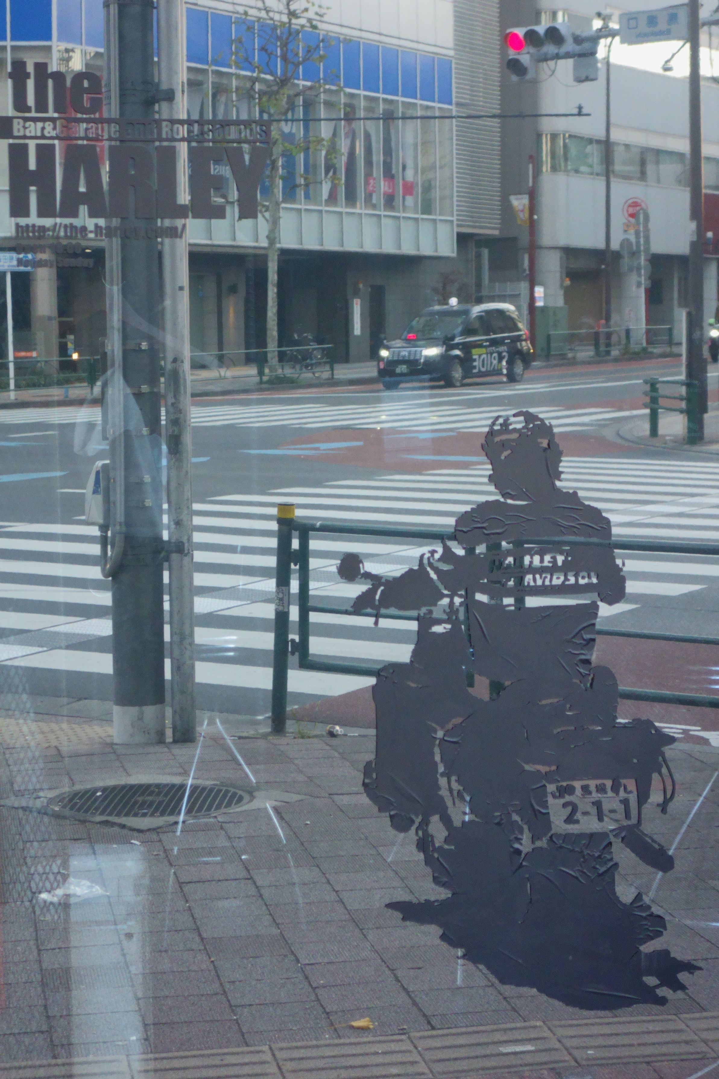 バーのウインドウに映り込んだ交差点