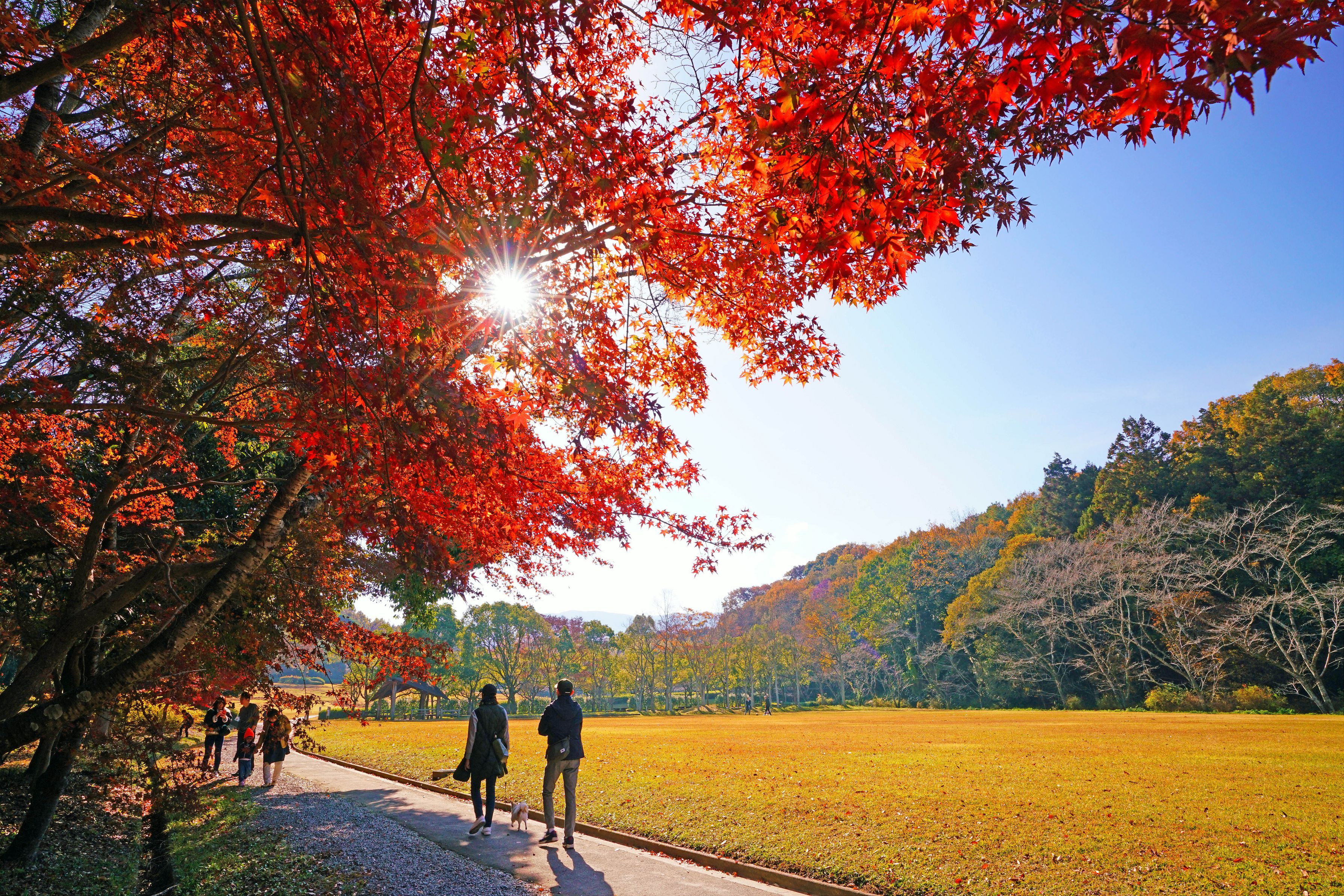 香川県満濃池森林公園を散策。 紅葉を楽しみに、皆さん散歩されていました。
