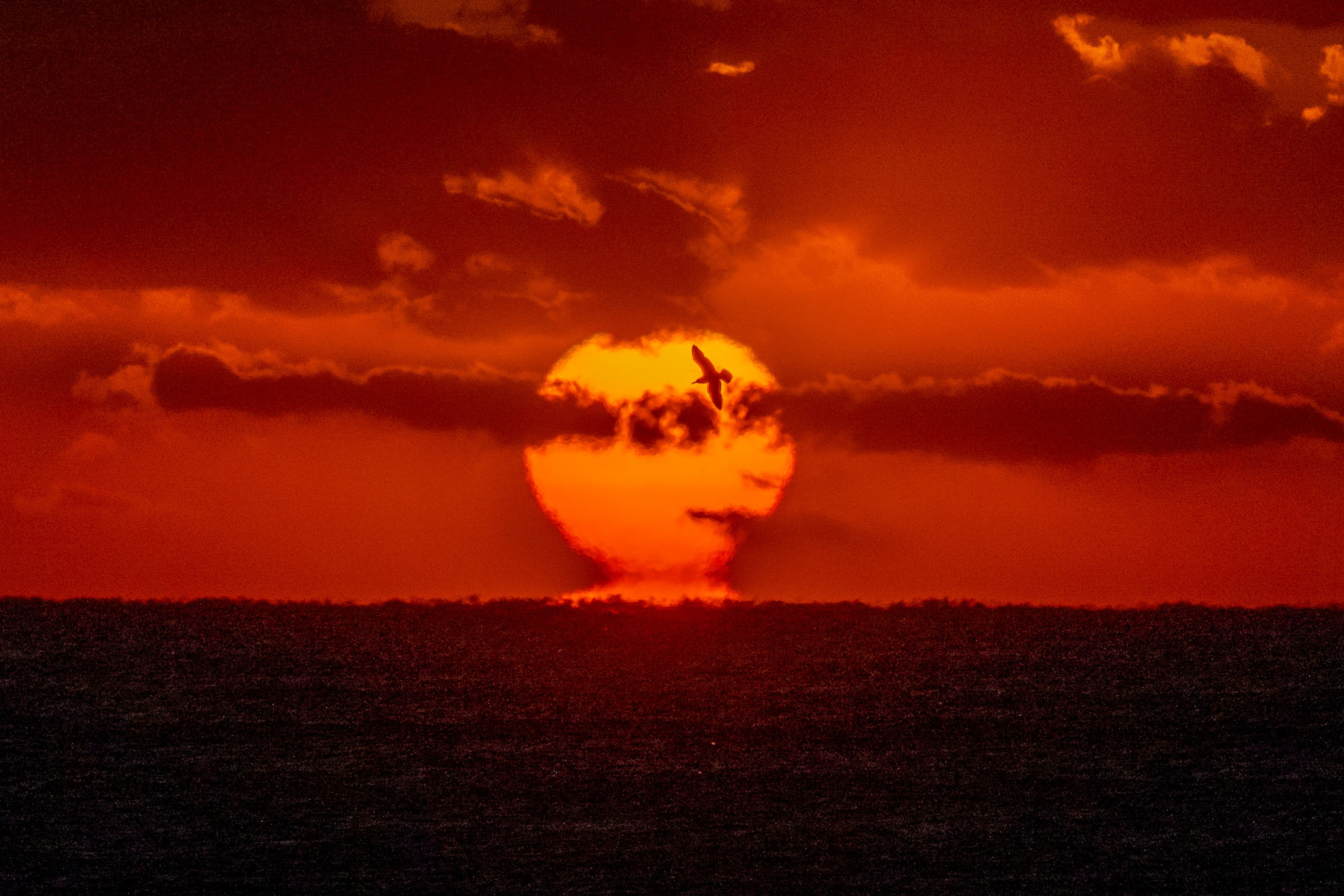 だるま朝陽の前を鳥が飛んでくれました。