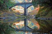 90周年の記念行事が伊勢奥津駅で行われていました。ここ真見橋梁も名松線の名物撮影スポットの名に恥じない人出でした。キハ75系が走り去って、人出もひと段落をしたころに通った初めて見た2両編成のキハ11系を撮影しました。2枚目は伊勢奥津駅で出発駅の後出発したキハ11系を撮りました。ヘッドの90周年記念ロゴがいいですね。