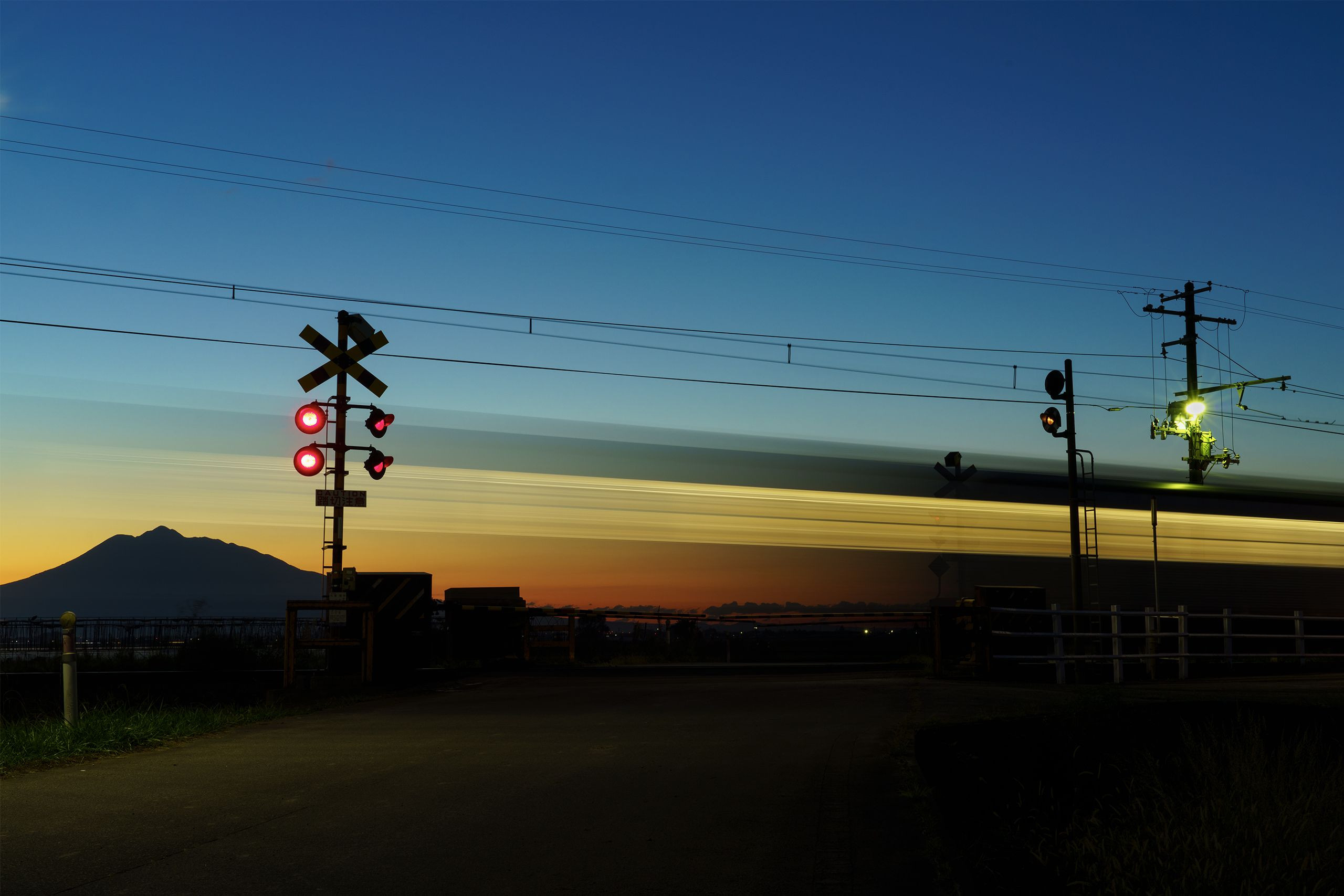 製品情報>My Sony>αcafe>夕暮れの弘南線踏切と津軽富士(Sj.SCENEさん)
