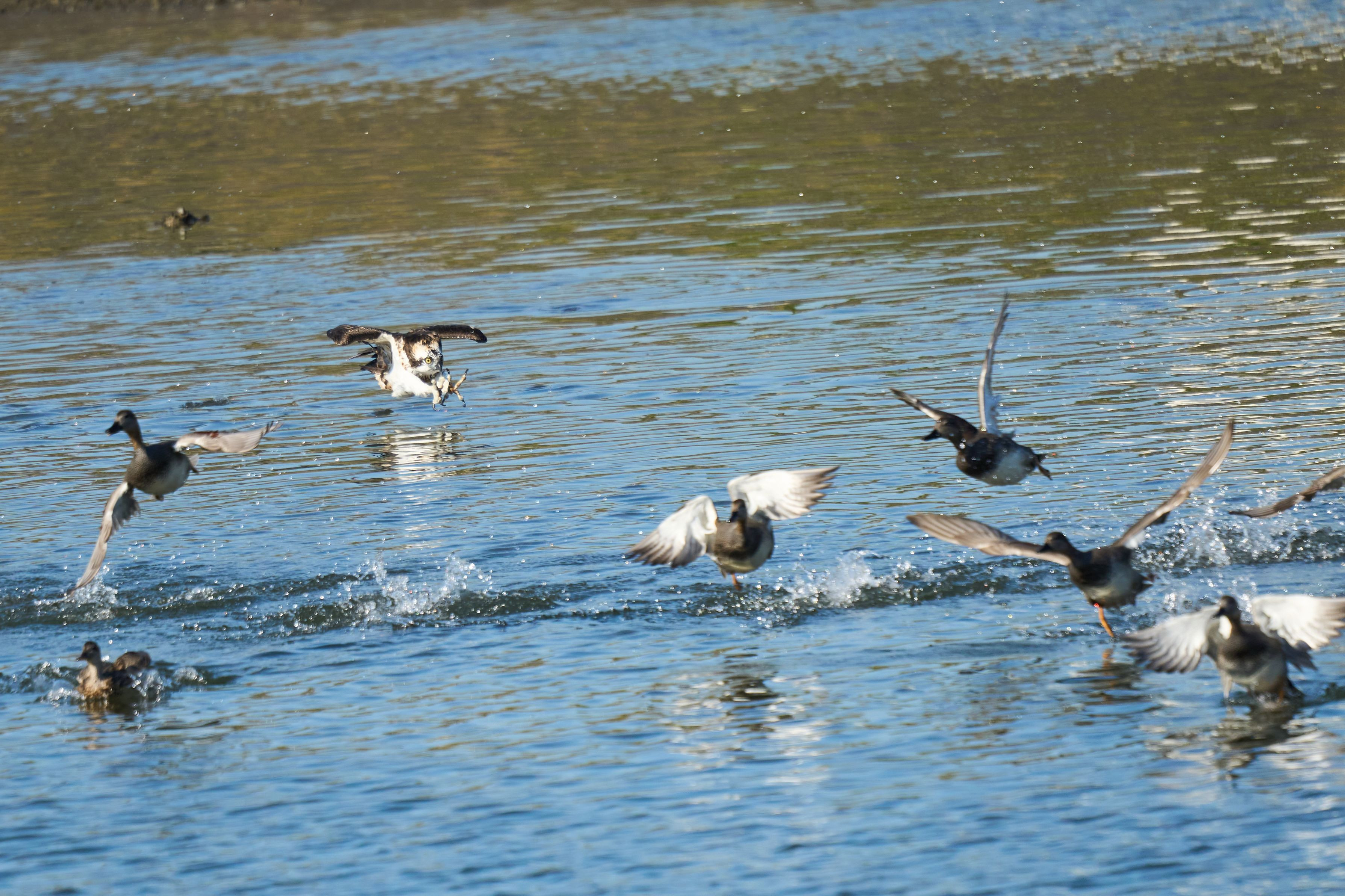 今期も不発気味のミサ活です。 カモたちがプカプカ浮かんでいるところにミサゴが急襲!といってもカモの下にいるボラを狙っていますね。空を飛んでいる時はさほど気にはしませんがこんな近くに鉤爪を立てて来られたら そりゃ逃げますわ^^; ※RAW現像、トリミングあり。 レンズSIGMA150-600DGDNOS