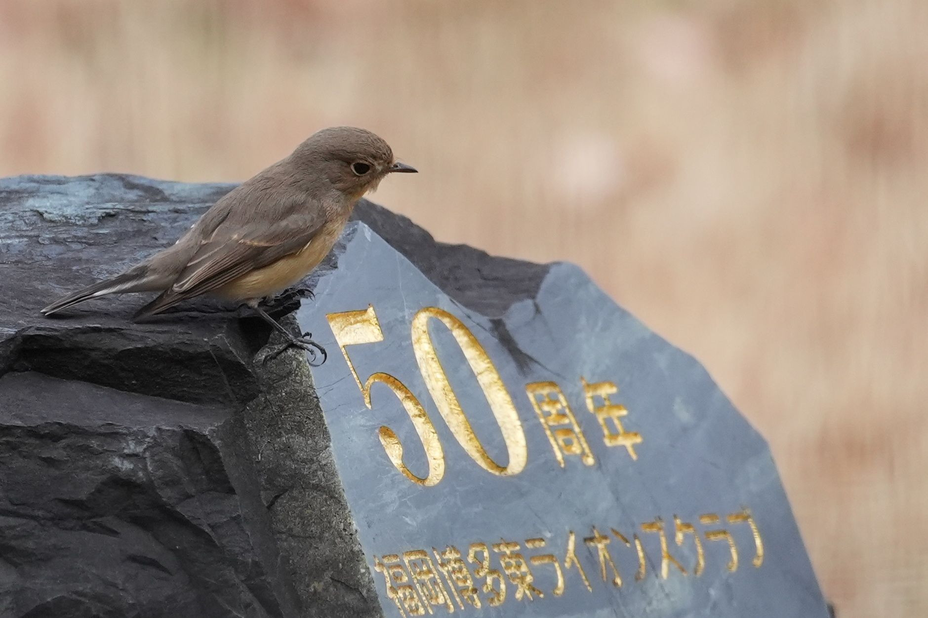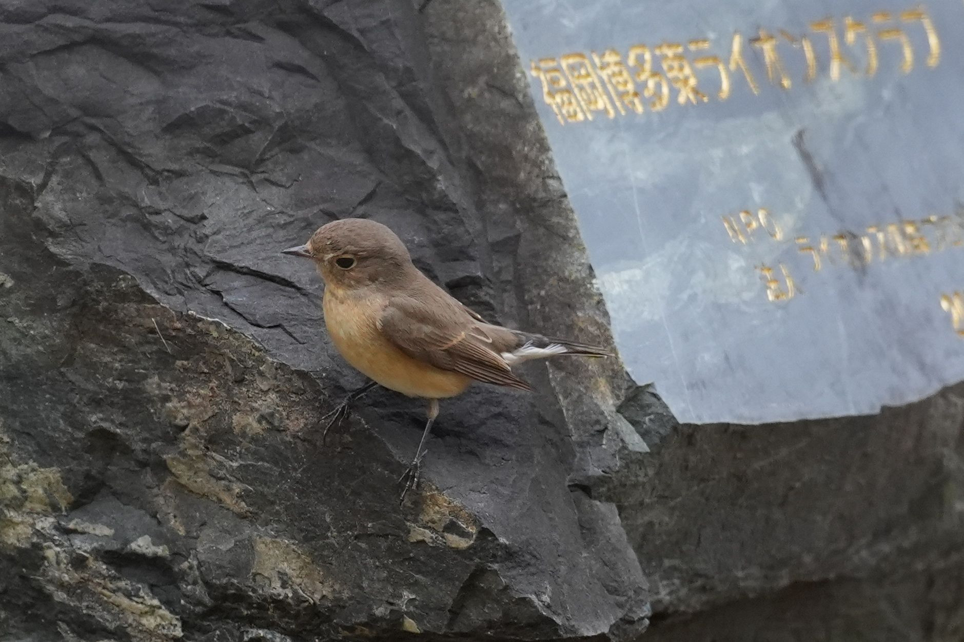 記念に置かれた石の上で遊ぶ。 #ニシオジロビタキ#