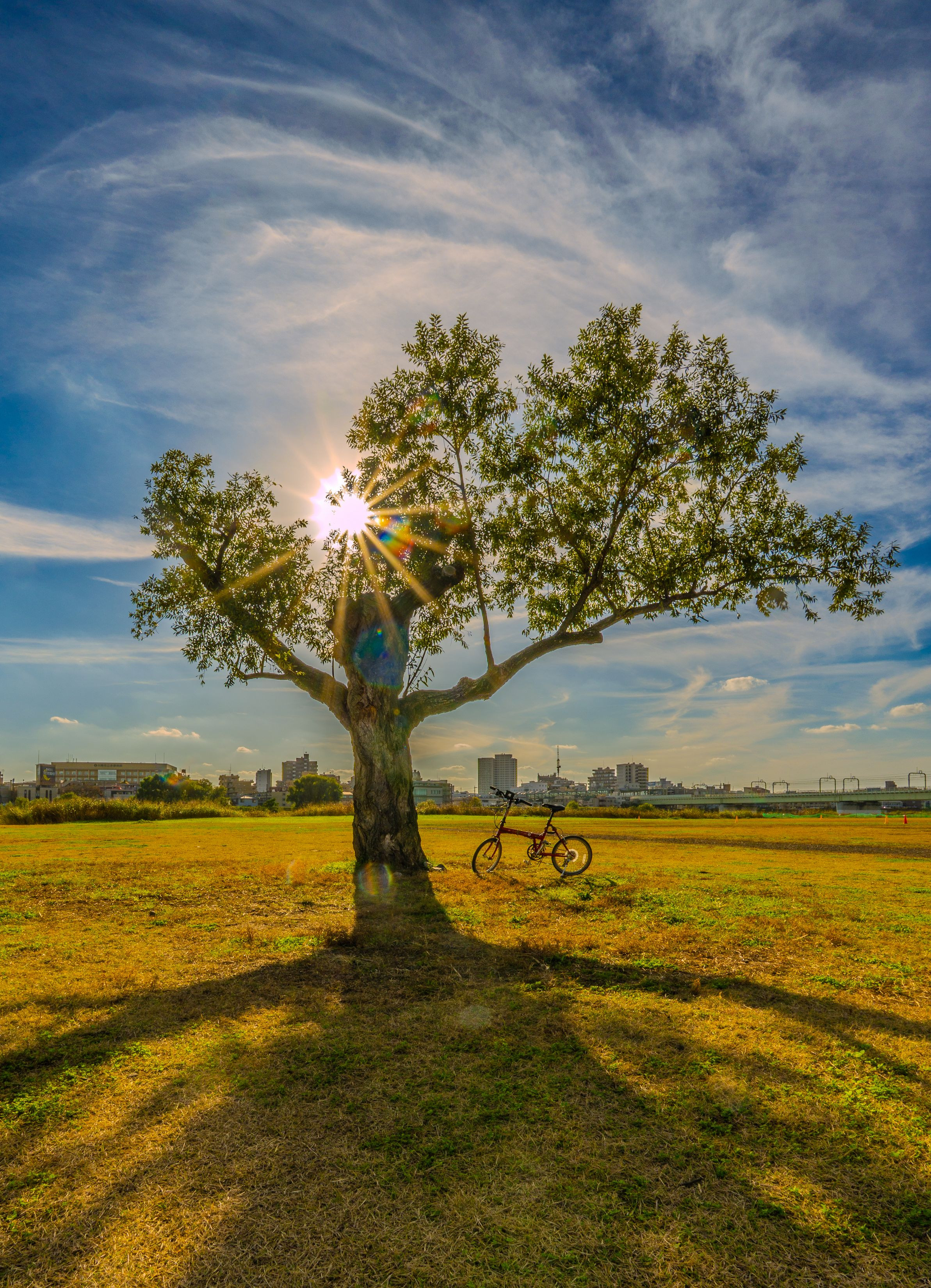 秋晴れの日曜日の午後、多摩川沿いをサイクリング。途中、疲れたところで木陰で休憩。丁度、他の方々がいなくなったところで、自転車を撮影。