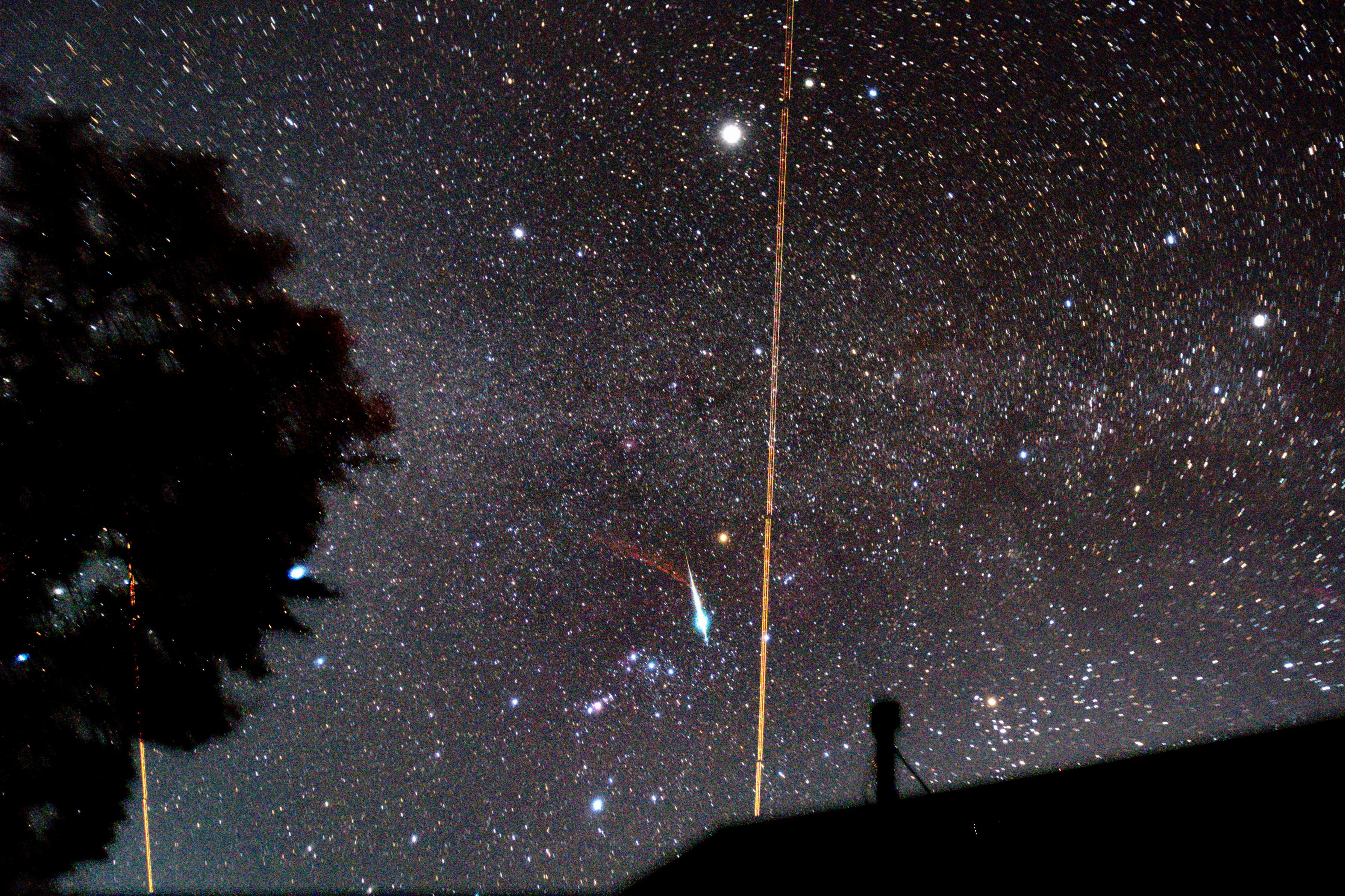 12/13 2:33頃の火球です。流星痕が写ったので3分半だけ比較明合成しました。痕が移動する様子がよくわかります。一晩でふたご群流星がいくつか写りましたが、この火球の放射点は違うようです。