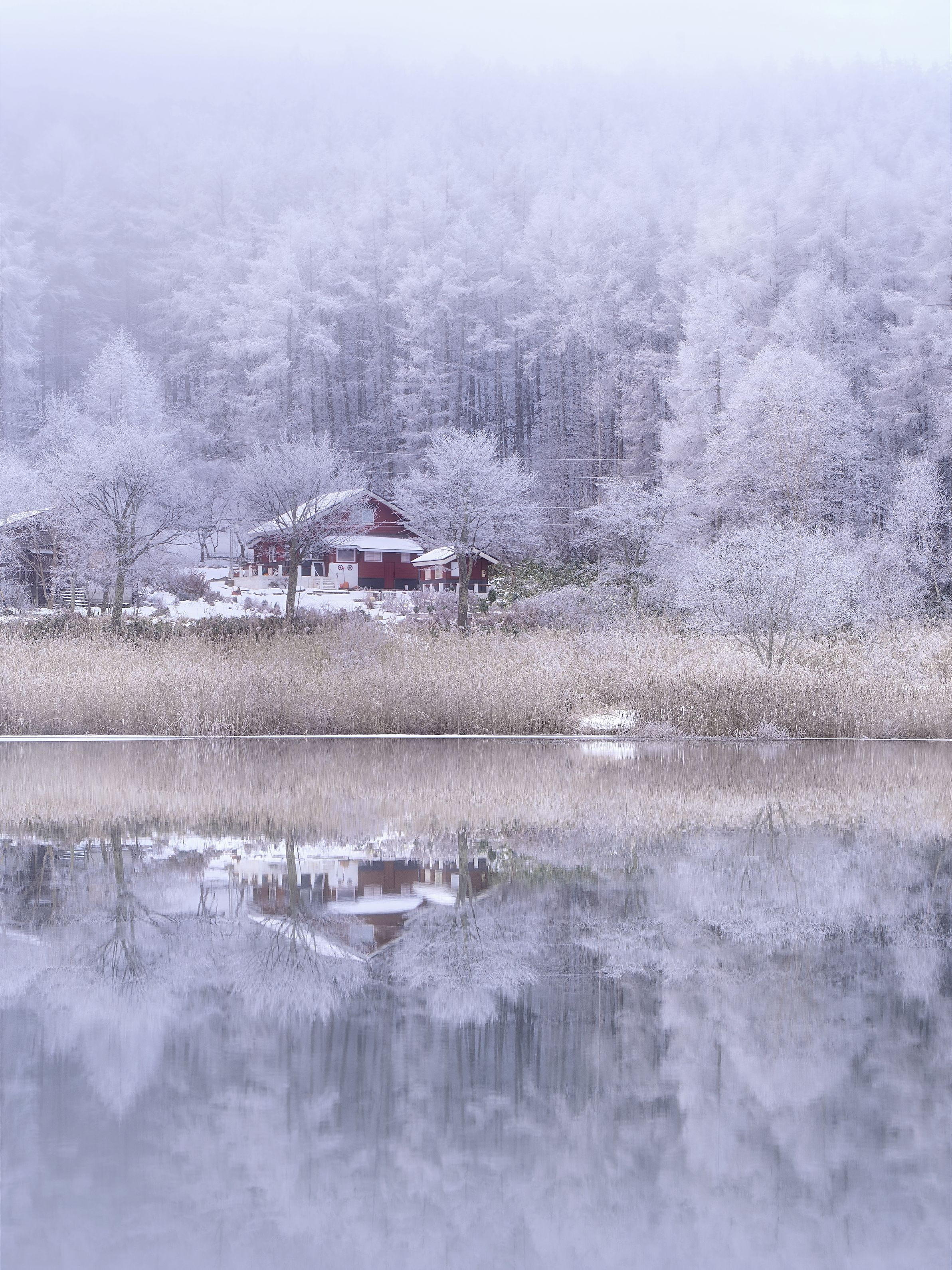 25/12/6に湖面凍結とあったけど、7-8はやや暖かったのでわずかな期待を胸に秘め、400kmの長駆。夜半到着時には対岸が見えないほどの濃い霧に覆われ、樹氷の樹の字もないので諦めていた。でも、何ということでしょう... あたりを覆いつくしていたその霧が樹にまとい、小一時間で樹氷に化け、かつ、朝霧も纏うという過去最高のコンディション。 遠征してよかった!!