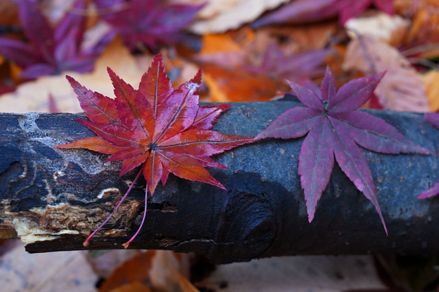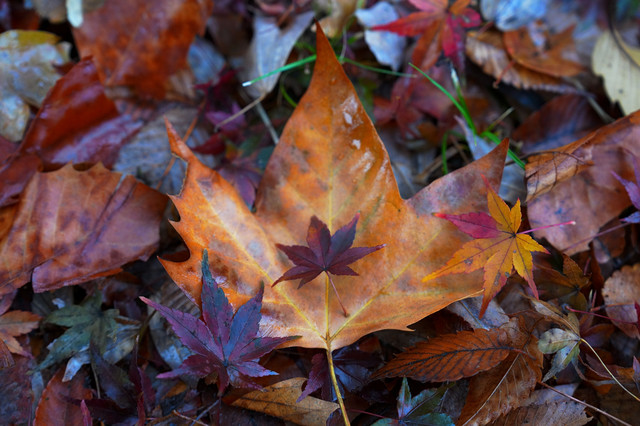 色づいた落ち葉が重なり合い、雨上がりの静かな調べを奏でていました。