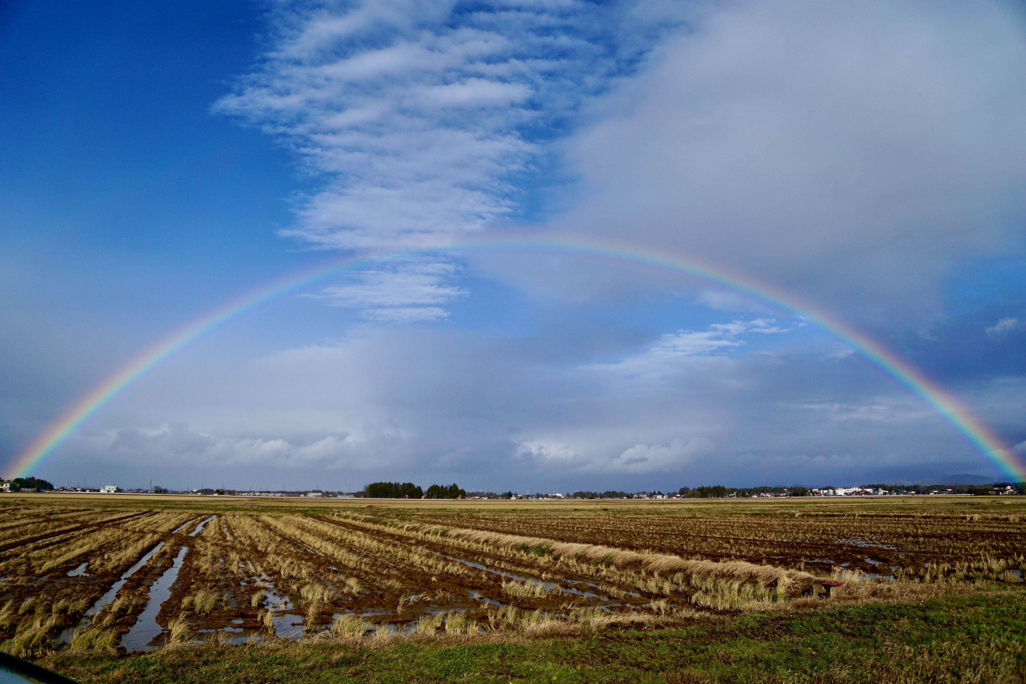近所の田んぼにたくさん白鳥が越冬中 せっかくの休日だから会いに行こうかなって、散策中ににわか雨 すばらしい虹が出てくれたけど、本命がいない・・・・・ 白鳥さんがいたら、最高だったのになぁ
