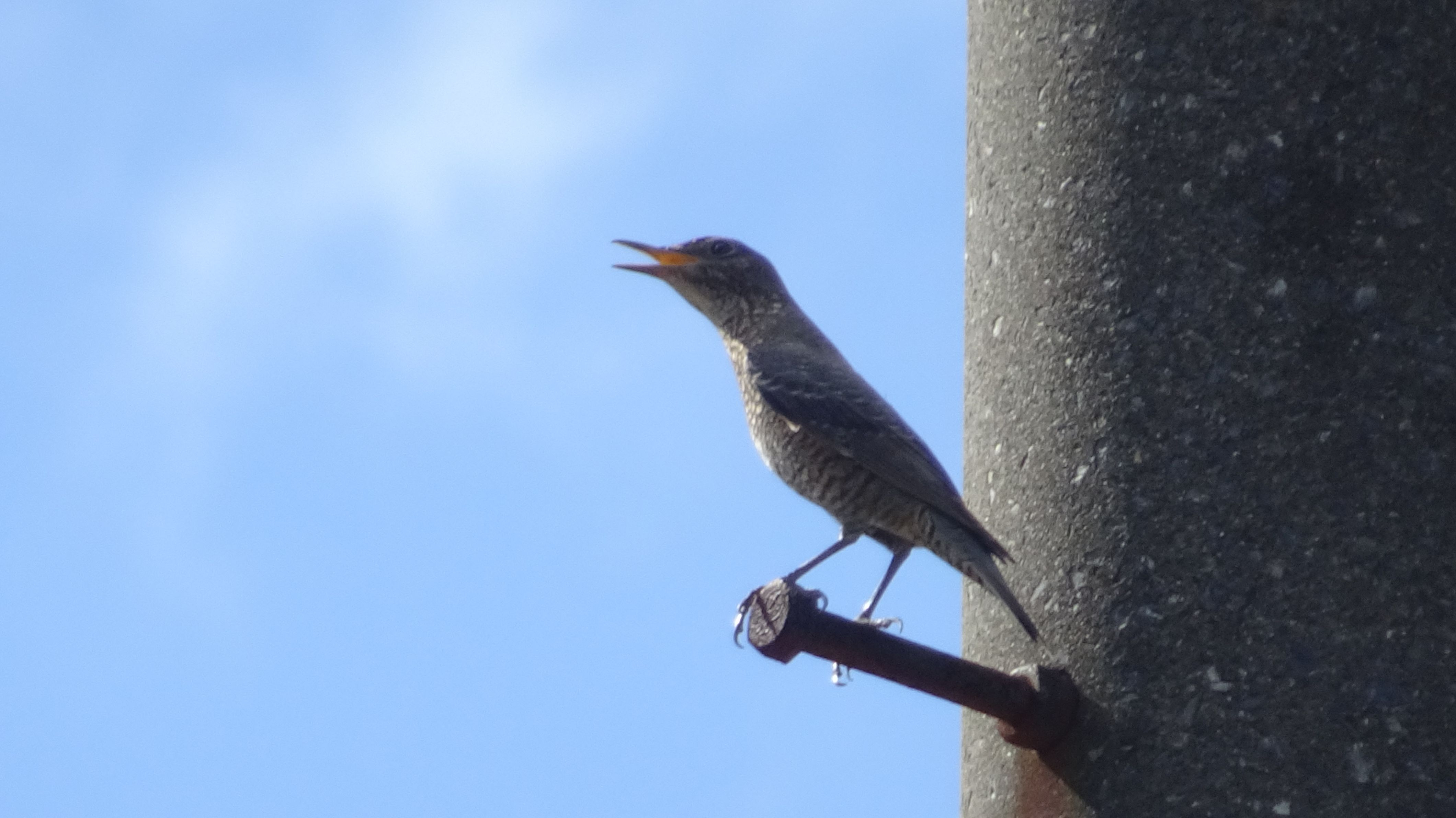 ちょっと望遠で画像がしっかりしませんが、イソヒヨドリのメスです。 鳴いてるわけではなく、このようにしばらく口をあんぐりしたままなのでちょっと間の抜けたように見えてしまいますが、何してるんでしょうね? #イソヒヨドリ#