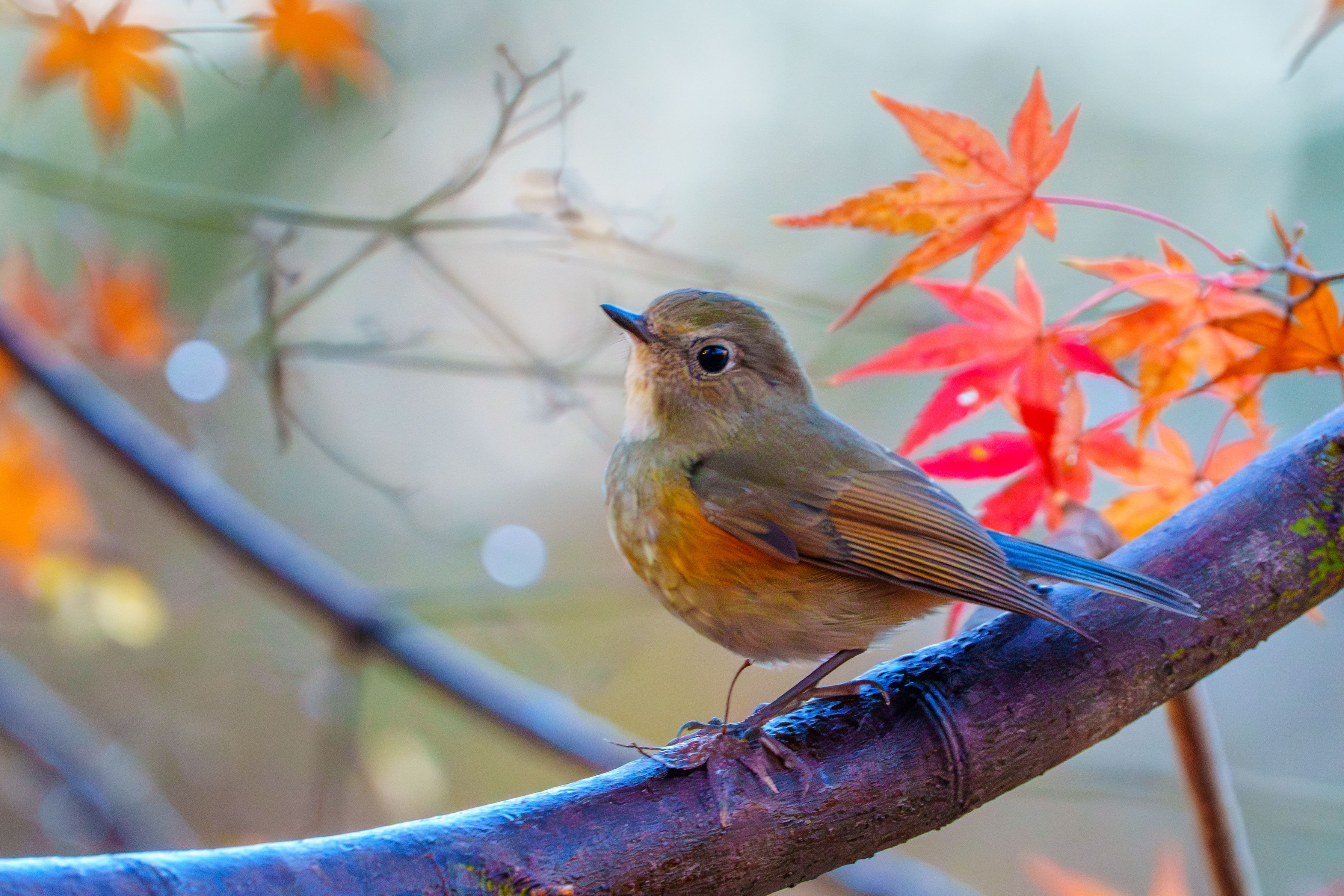 製品情報>My Sony>αcafe>冬紅葉とルリビタキ(やまおやじさん)