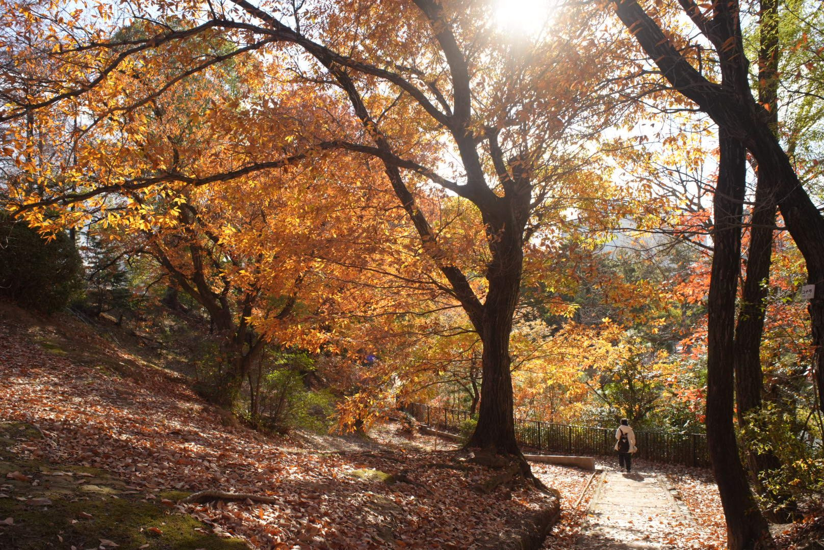 紅葉もそろそろ終わりです。湖畔の散歩道が気持ちいいです。 28mm F11 でマニュアル撮影しました。