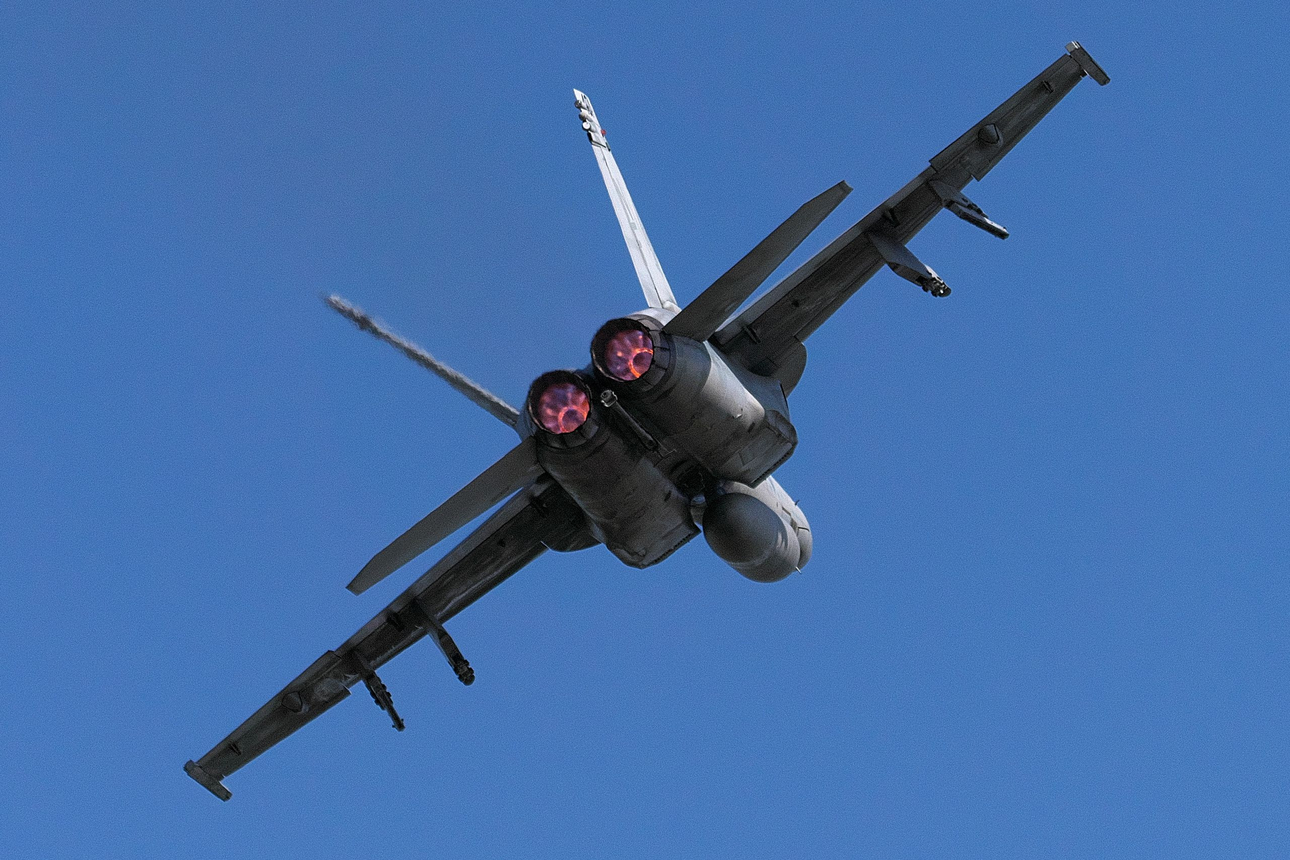 明るい時間帯のアフターバーナ―はなかなか綺麗に出ませんが、真後ろからならエンジンの中の炎まで綺麗に見えました。