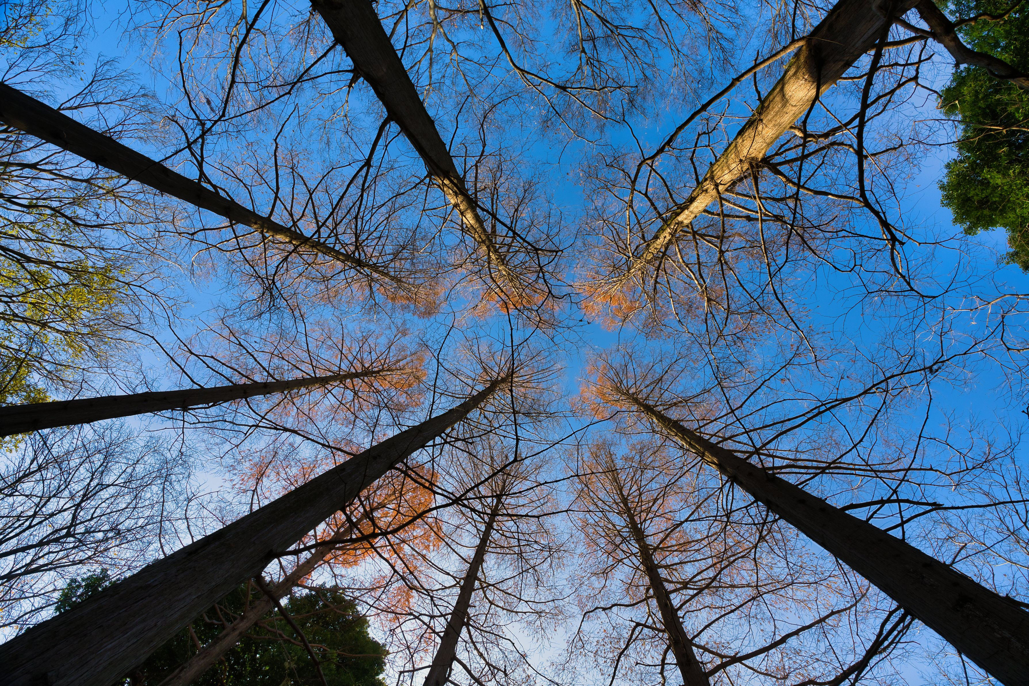 冬空に伸びる木立の先端に、秋の名残が残っていました。