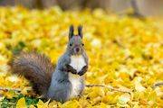 北海道の紅葉とエゾリス 赤・橙・黄 時々 白