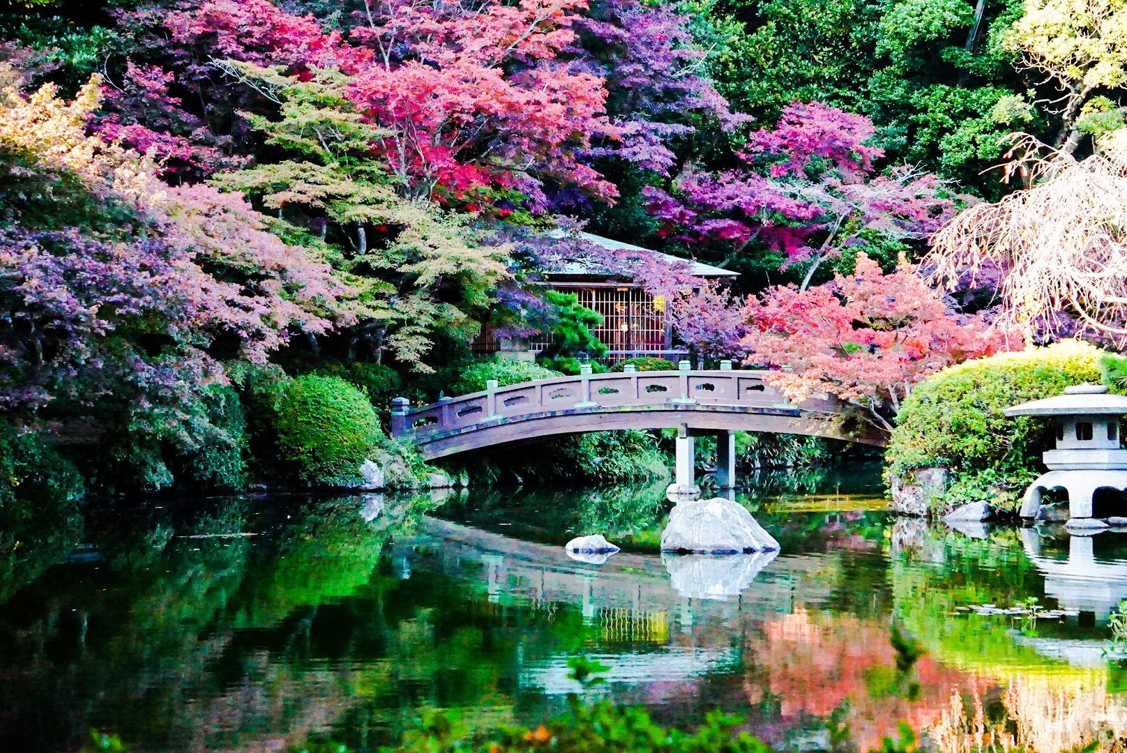 山口県下関市の長府庭園の紅葉です