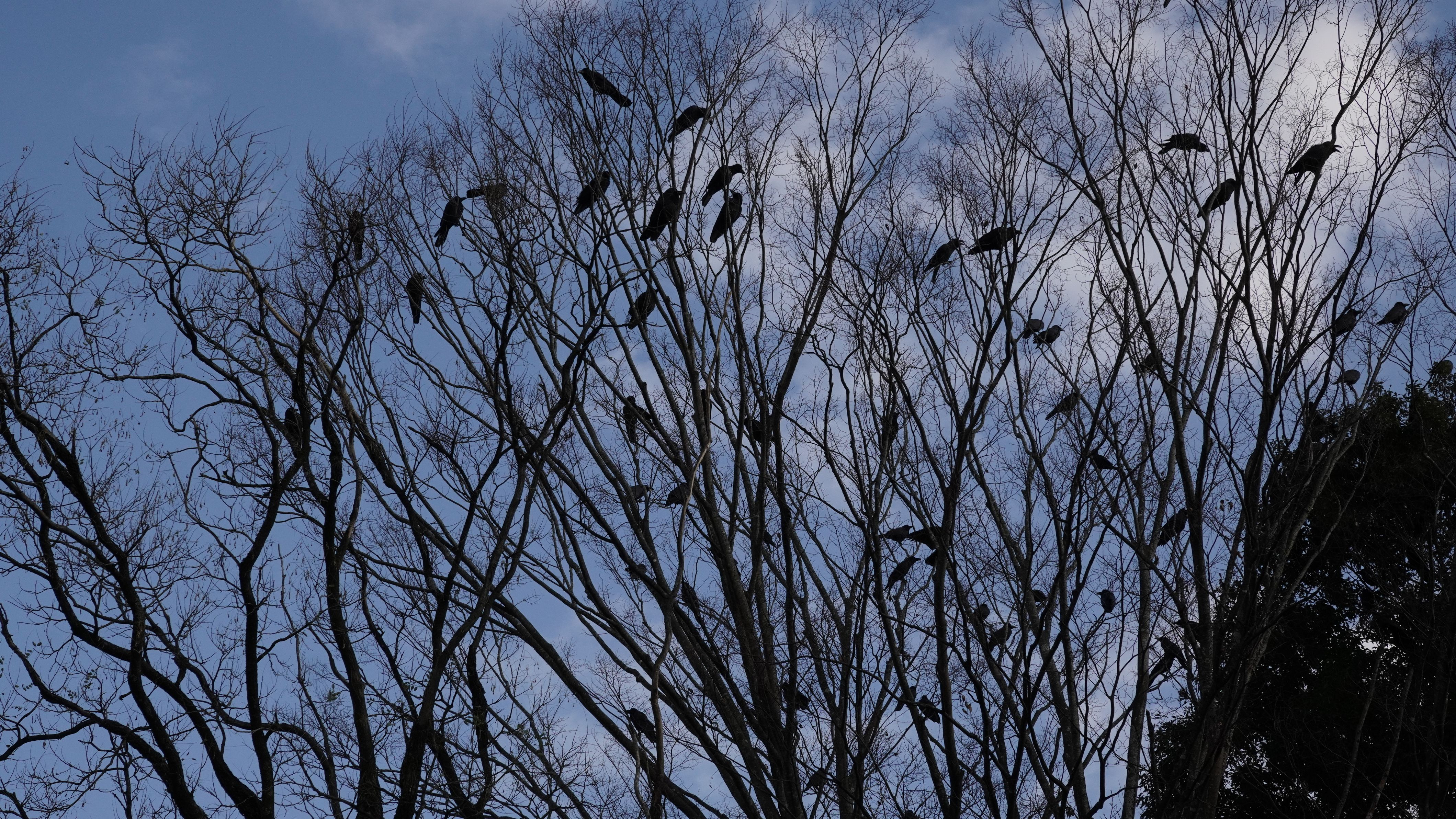 千葉市動物公園の鳥類園近くのカラスの塒