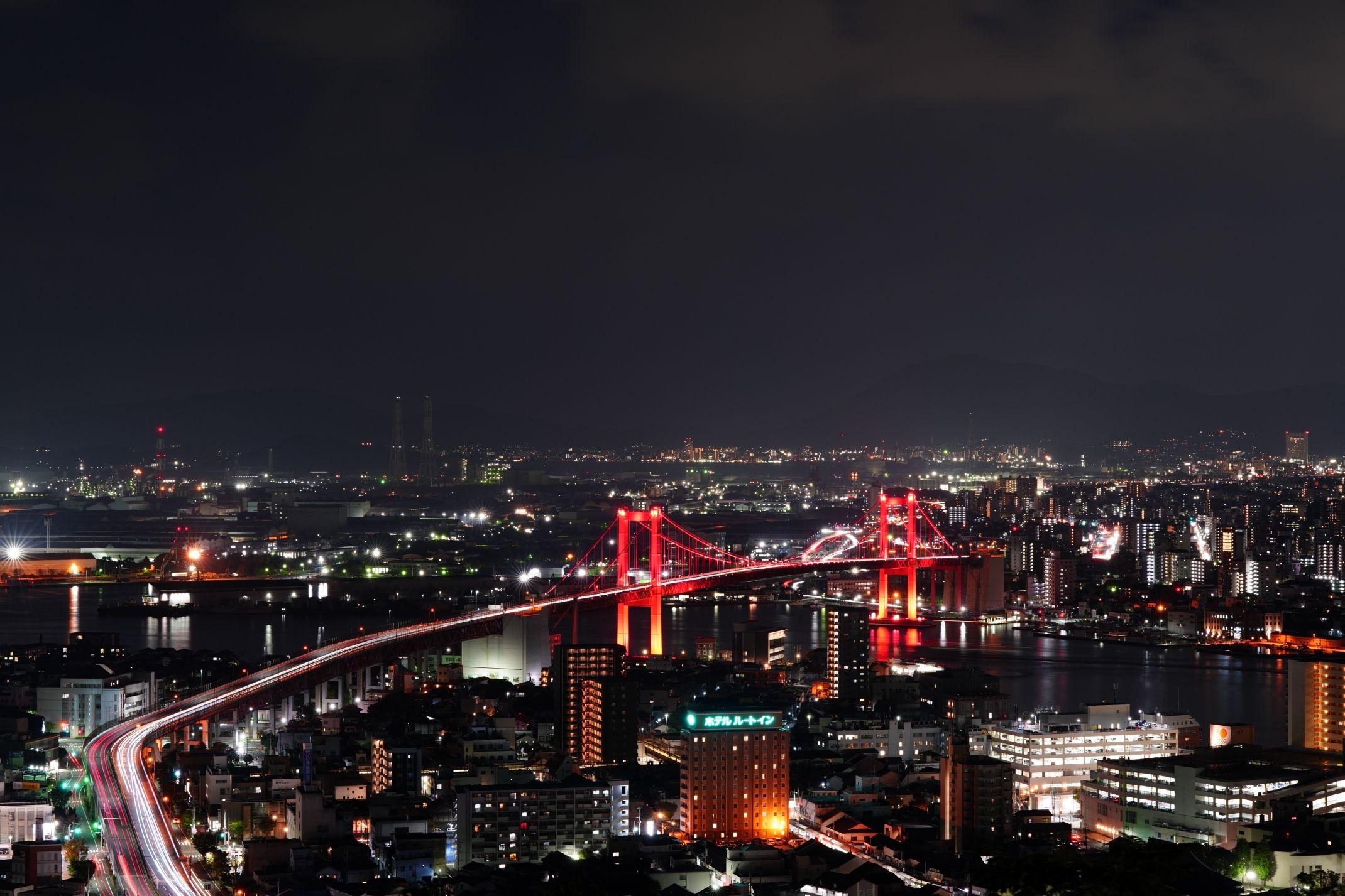 ライトアップされた若戸大橋