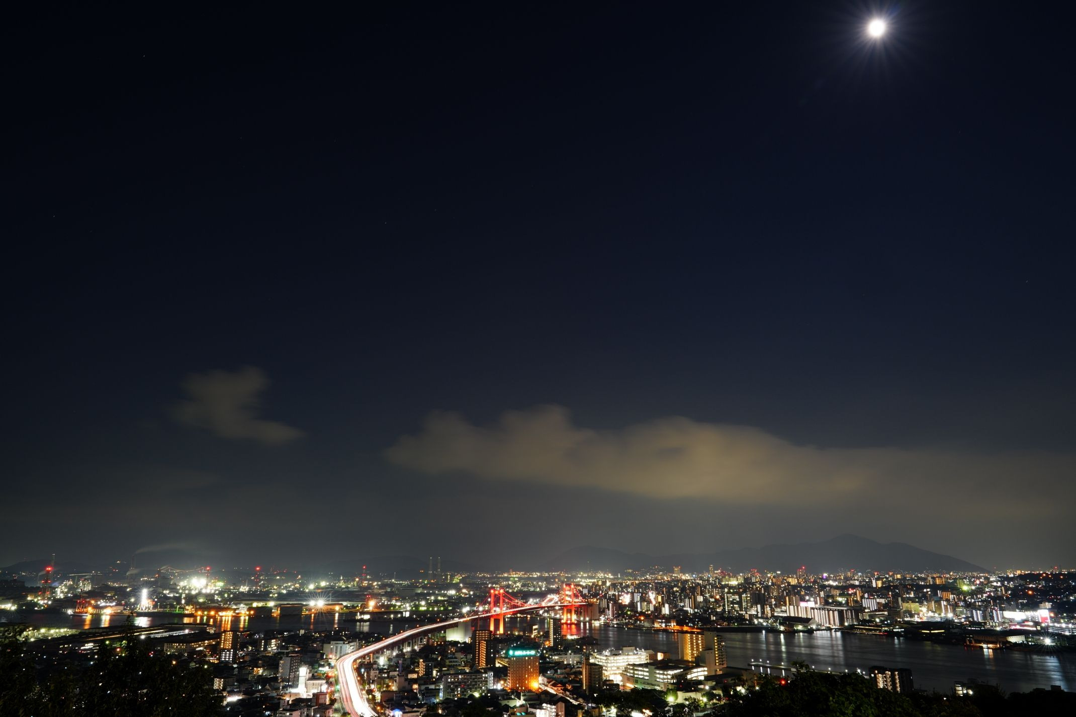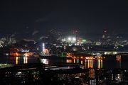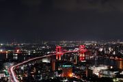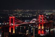 北九州市若松区にある高塔山からのライトアップされた若戸大橋です