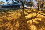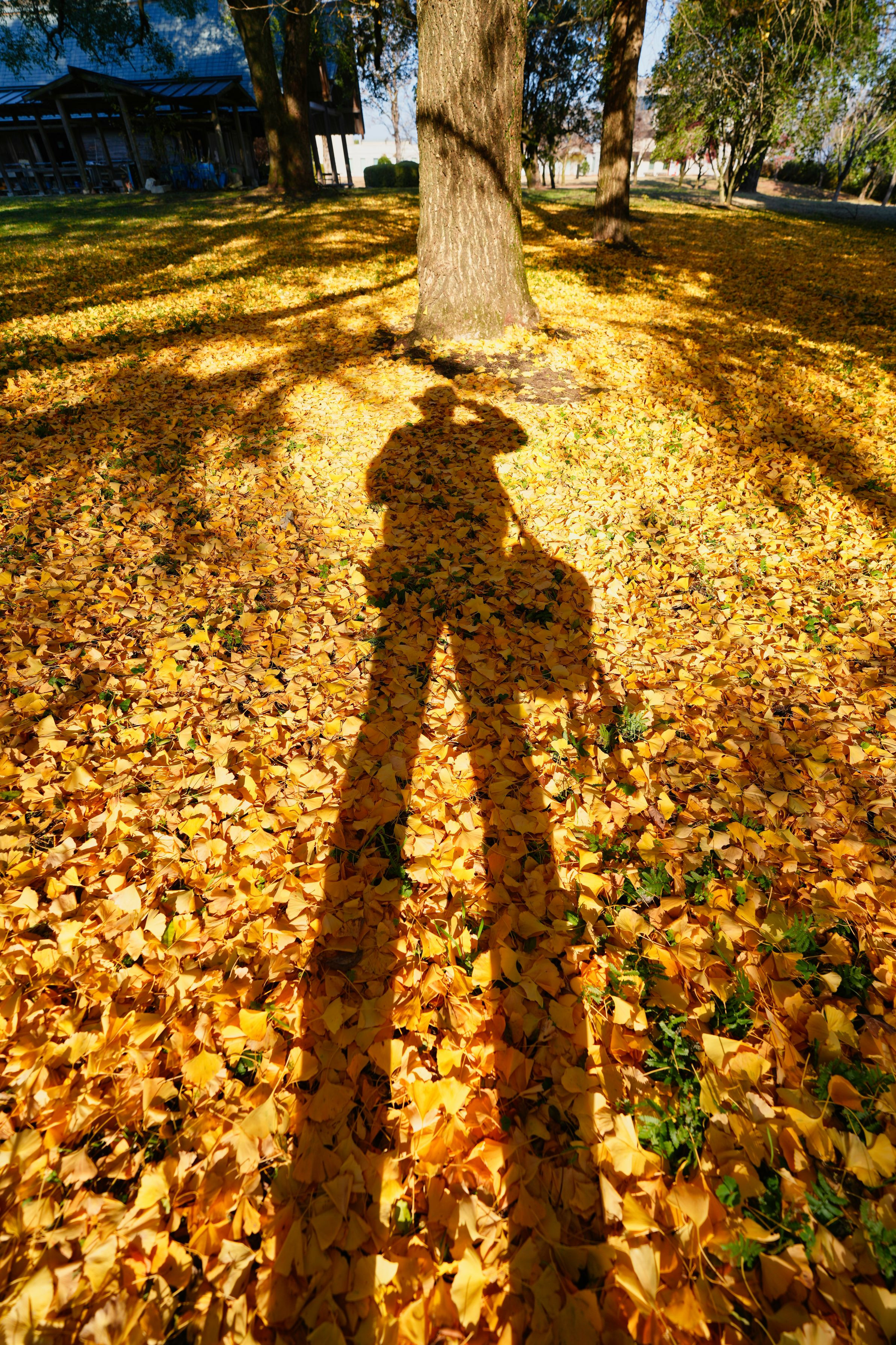 西都原古代生活体験館のイチョウが落葉しています。