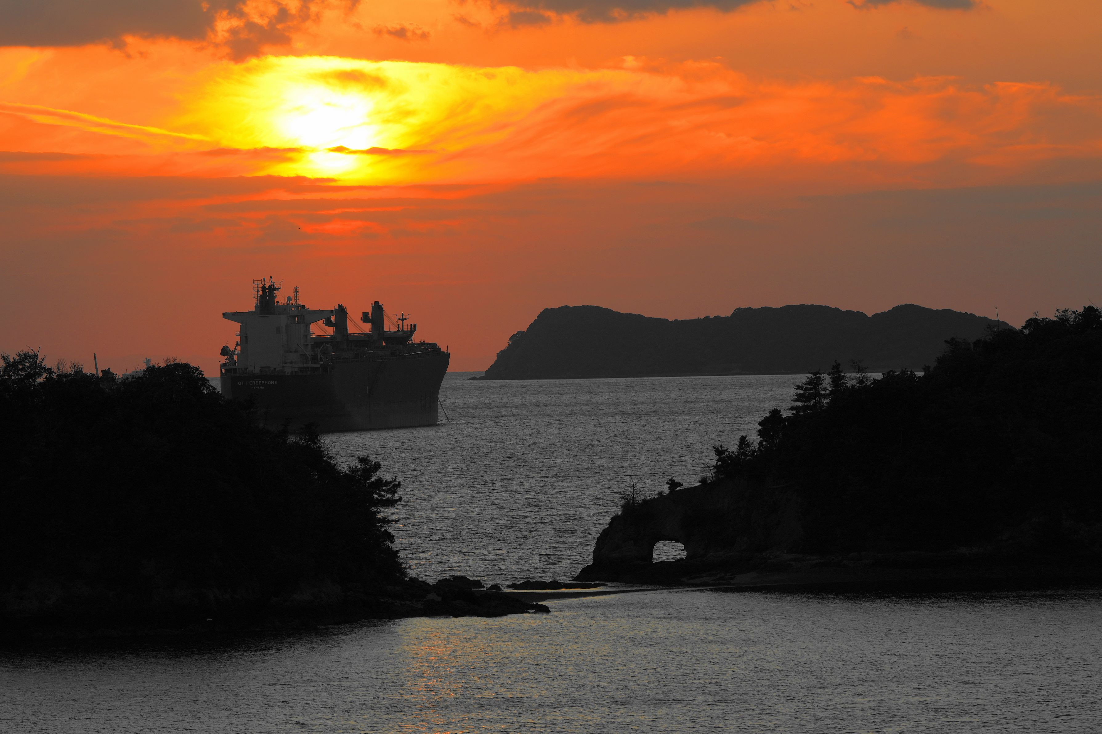 綺麗な夕日を期待してましたが幻想的な空 船も想定外でしたがそれはそれでの画になりました