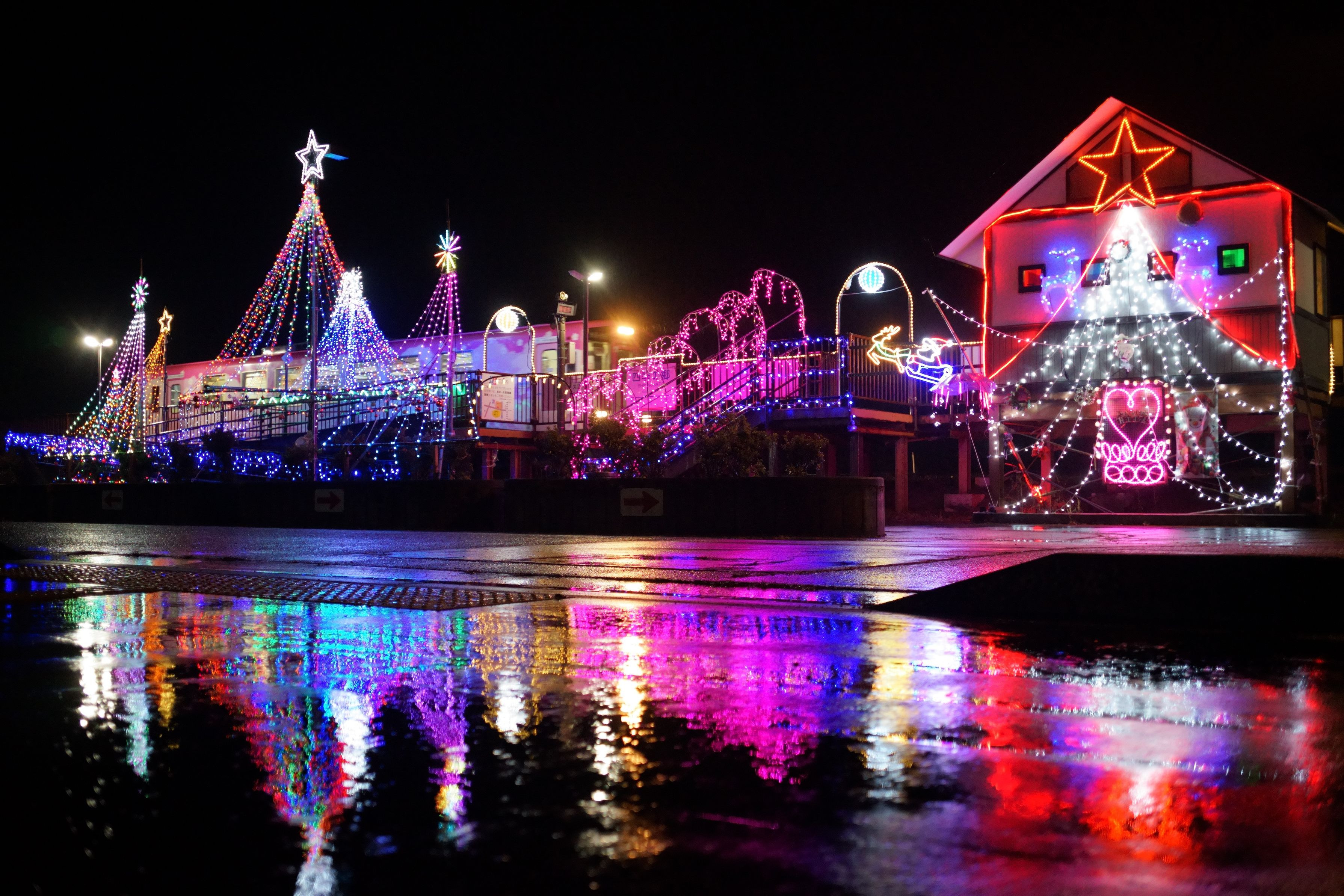 山形鉄道フラワー長井線:四季の郷駅 A.Schacht Ulm R Travegon 3.5/35 まさかクリスマスに雨になるとは・・・ 雪よりはありがたい。