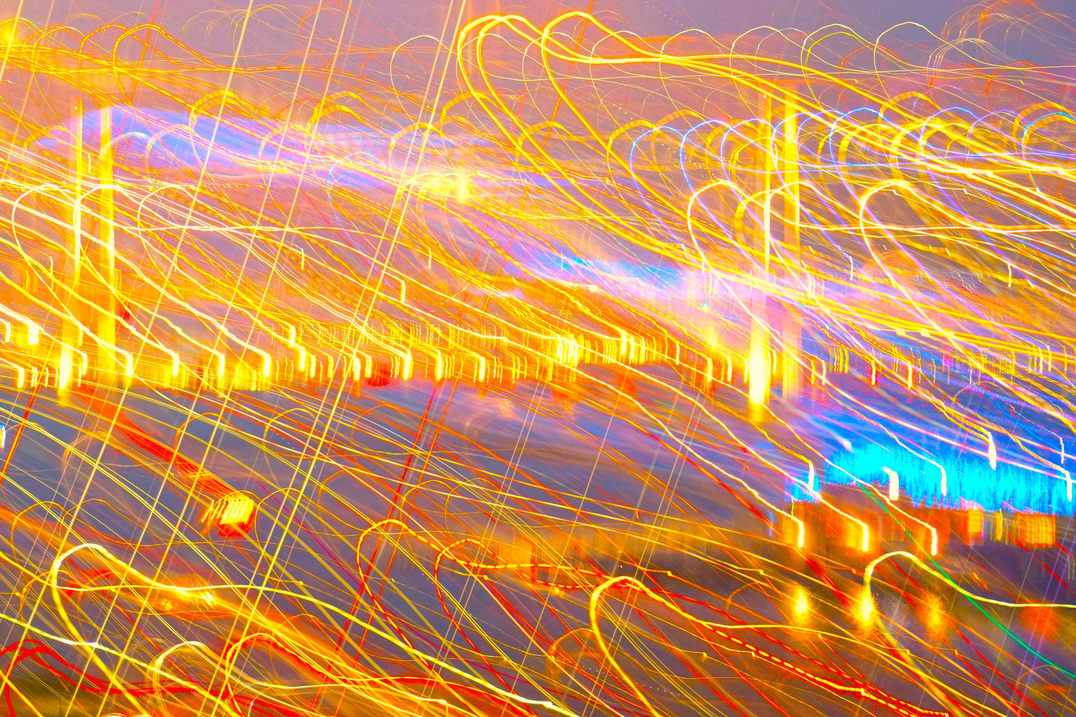 横浜ベイブリッジを背景に長時間露光でライトアート作品を作ってみました。
