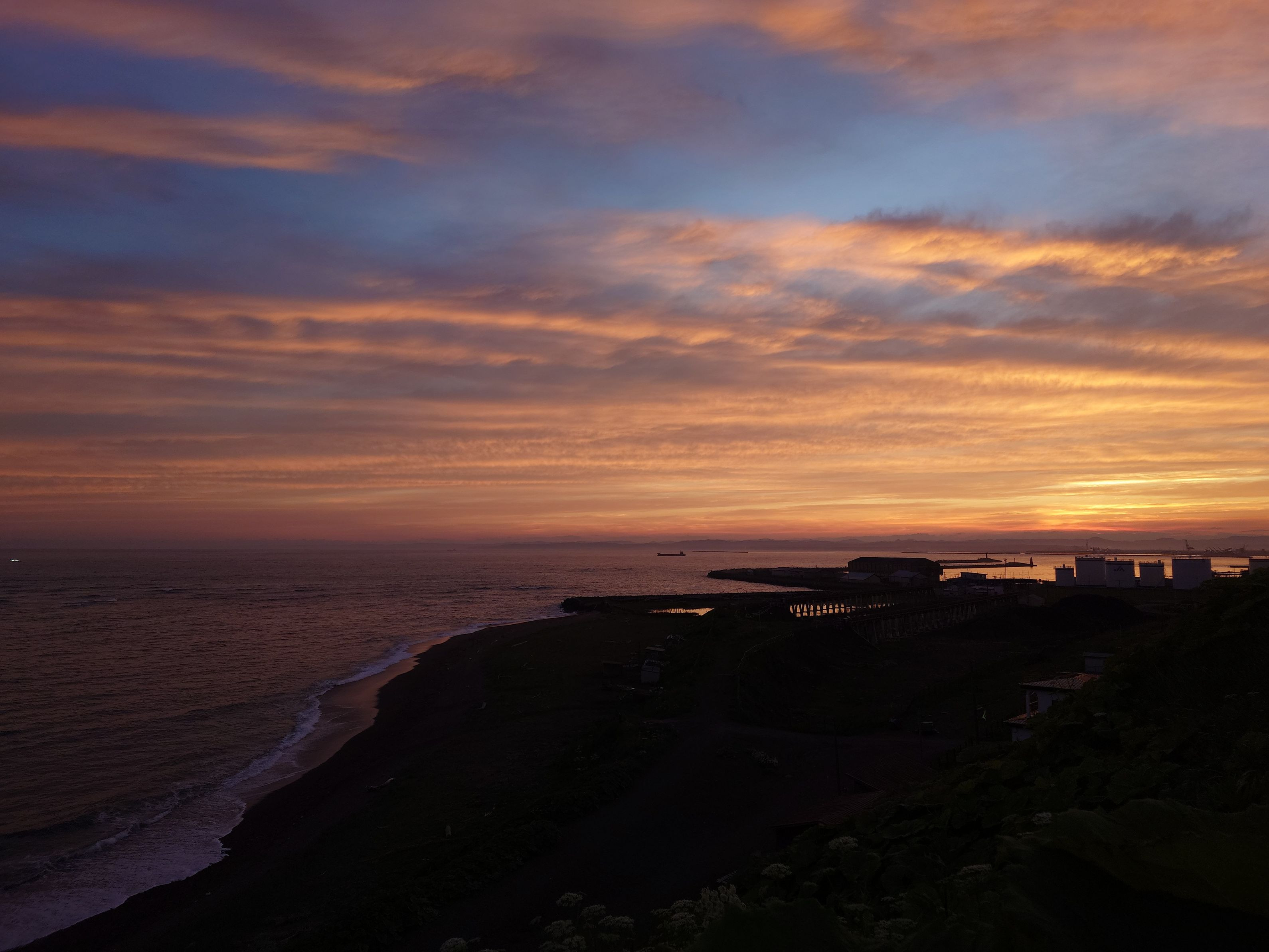 市内の海岸で撮った夕暮れのマジックアワーです。 今年は、オレンジ系のマジックアワーが多く、ピンク系や赤紫系のマジックアワーを見ることが出来ませんでした。