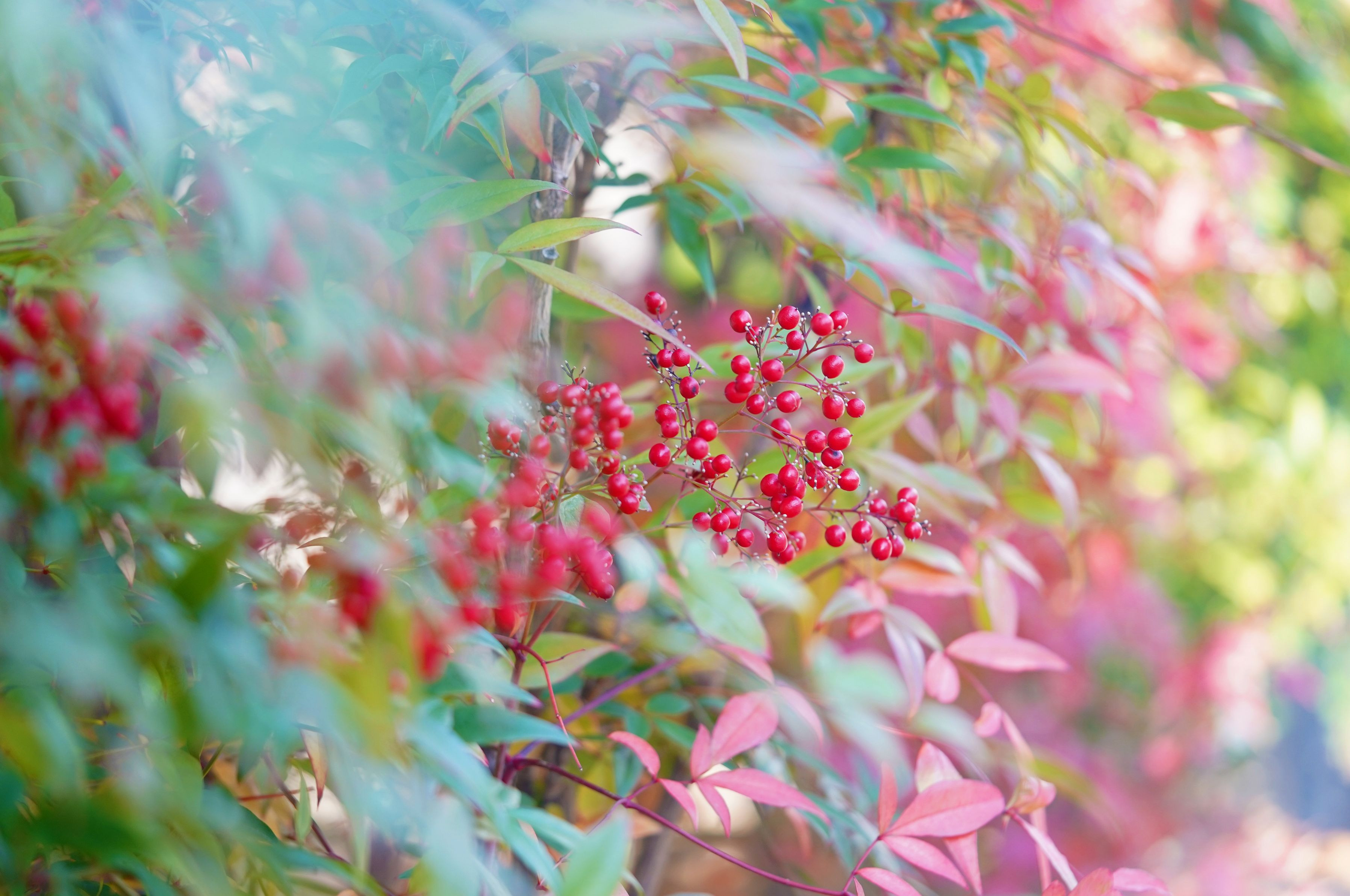 冬の到来を待つかのように赤い実をつけ続けるナンテン