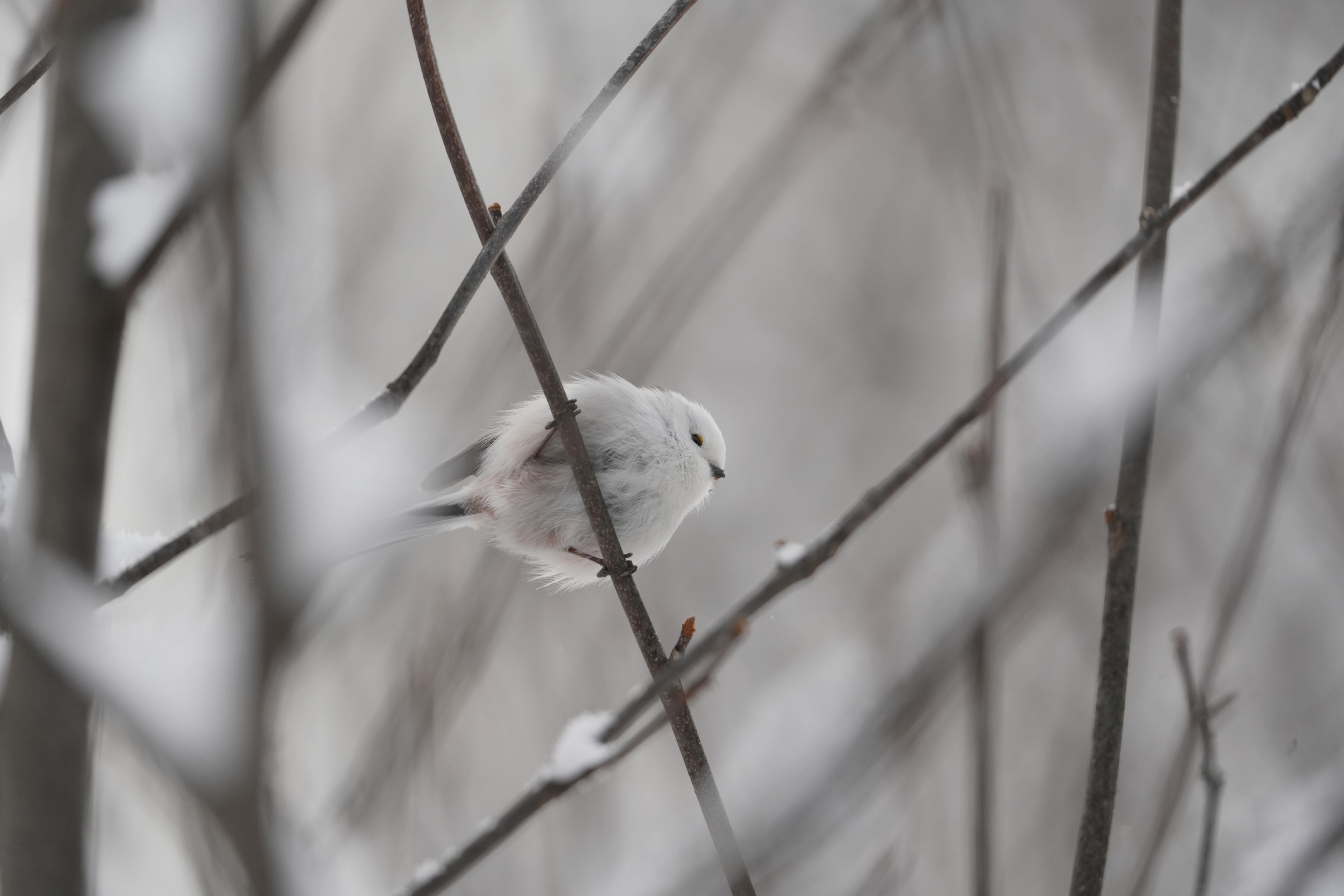 昨年は見る頻度が少なかったシマエナガですが、今シーズンは時々見かけます。枝被りが残念ですがモデルの可愛さでカバーします。