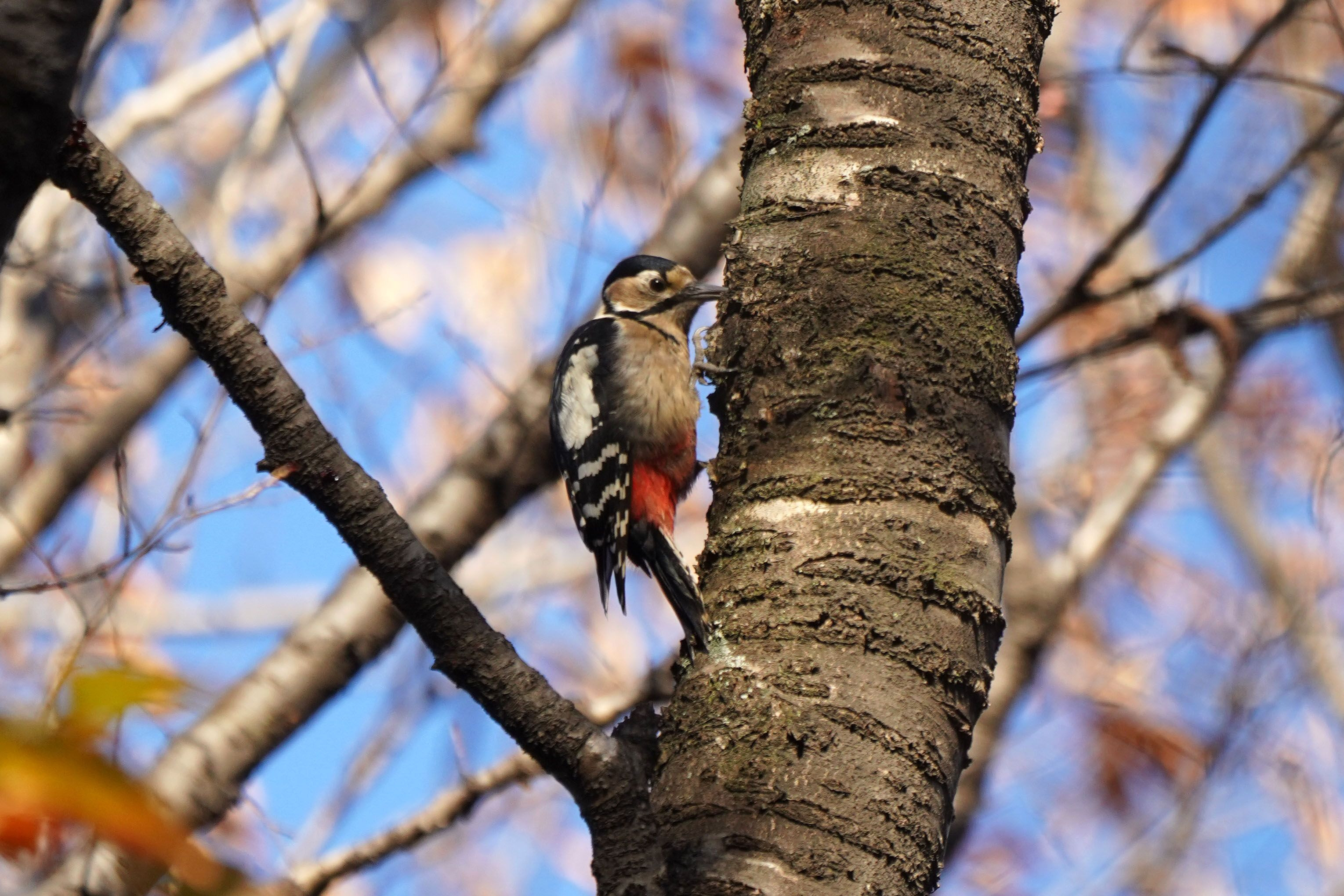鳥を探しに庚申山総合公園を訪れました。完全に餌付けされ小道具まで添えられた切り株には大勢のギャラリーが集っていて面食らいましたが、みんなが帰った後にもう一度訪れたら、青い鳥がおすまし顔で鎮座していました。森のなかでは赤い鳥がガンガンと枯れ木を突き、一生懸命にお仕事をしていました。