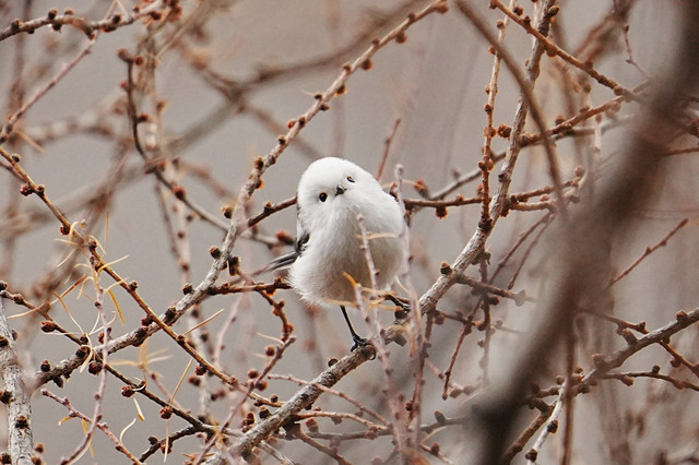 少しもじゃもじゃしたカラ松?の中に居た、シマエナガです。