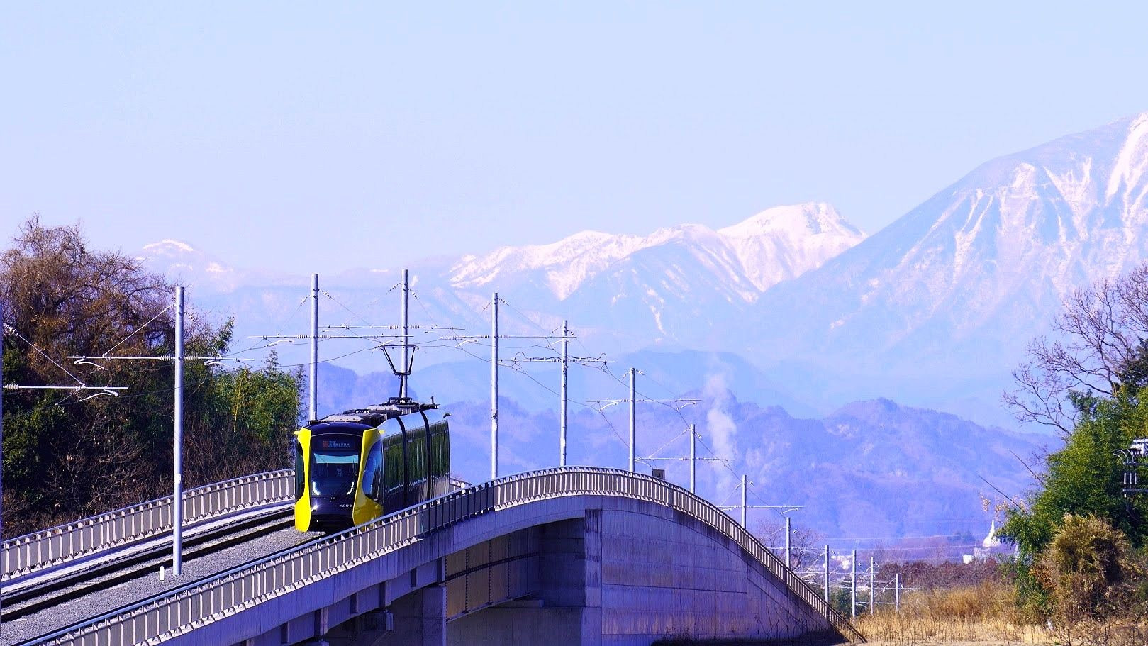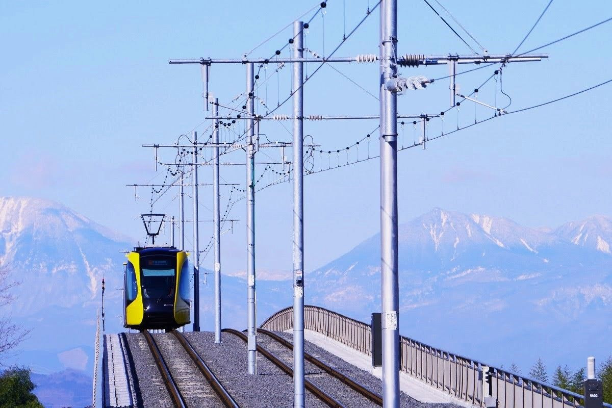 栃木県宇都宮 郊外の鬼怒川橋を渡るライトレールを見ました。