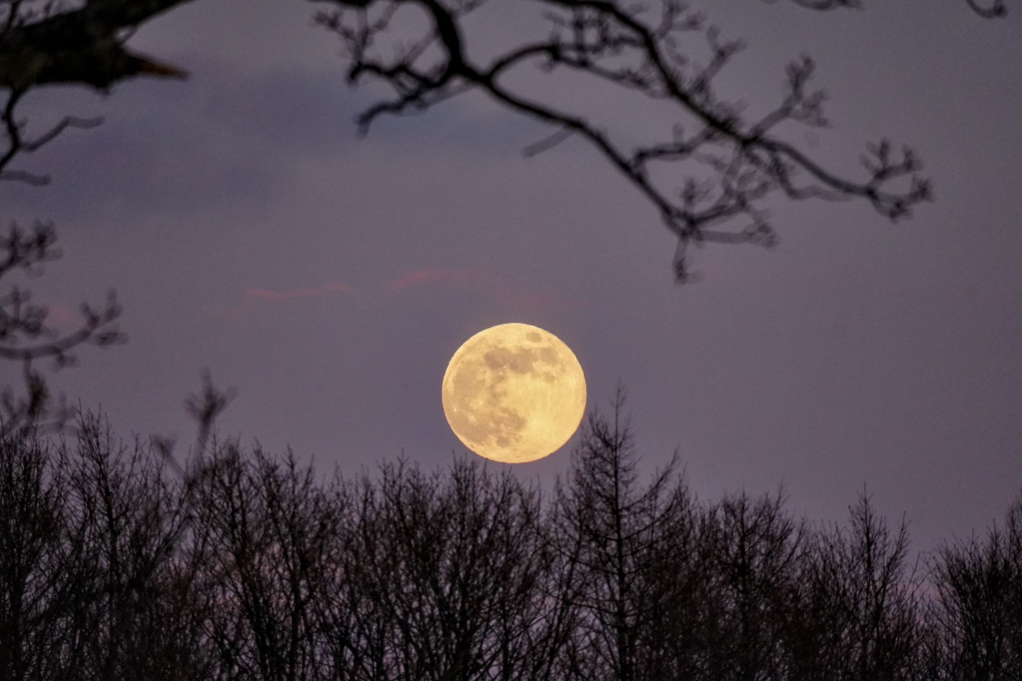 日没後、しばらく経ってから始まった月の出 満月が顔を覗かせるまでかなりの時間待たされました