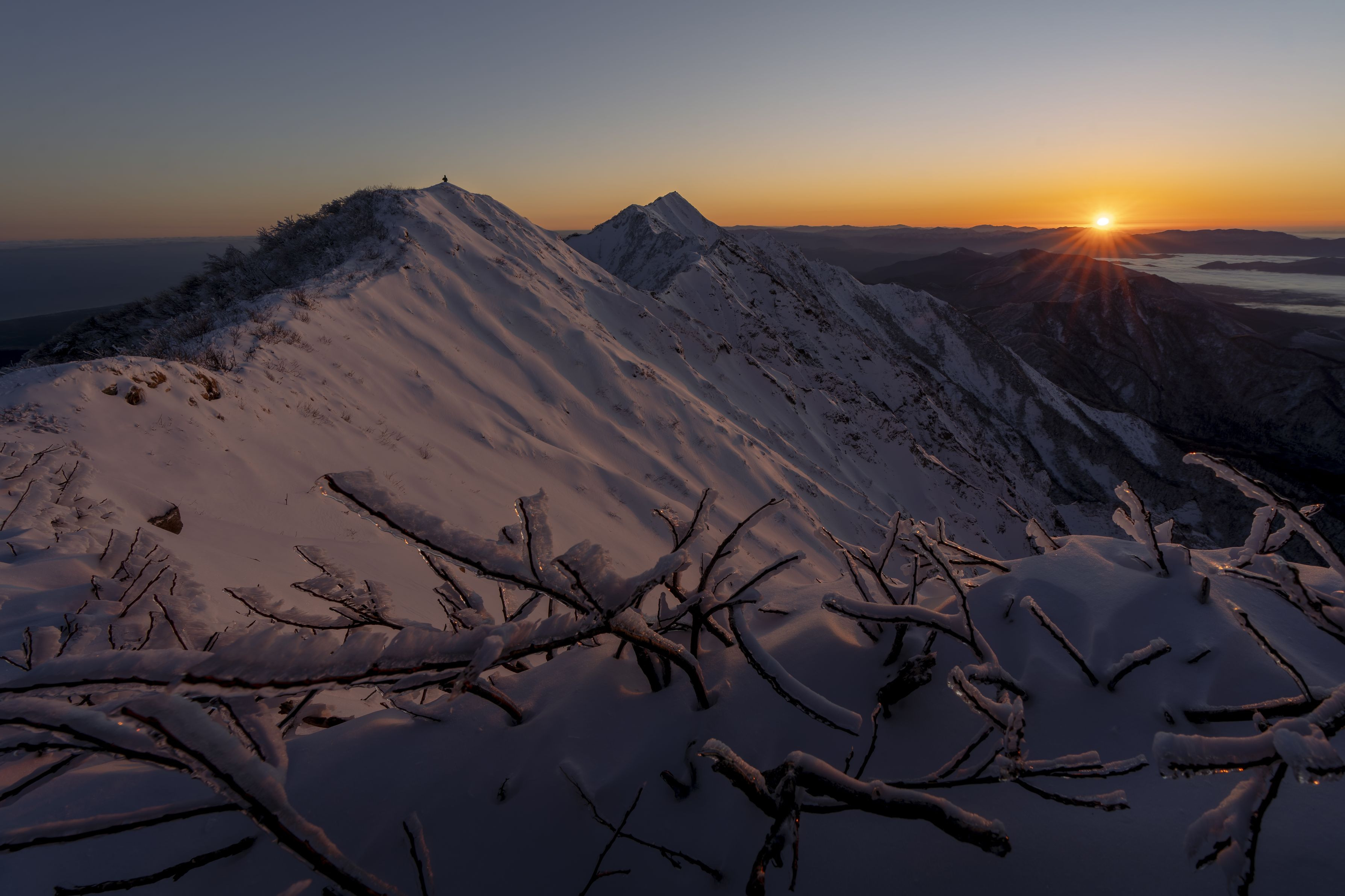 寒波の後鳥取の伯耆大山で最高の朝日を見ることができました。