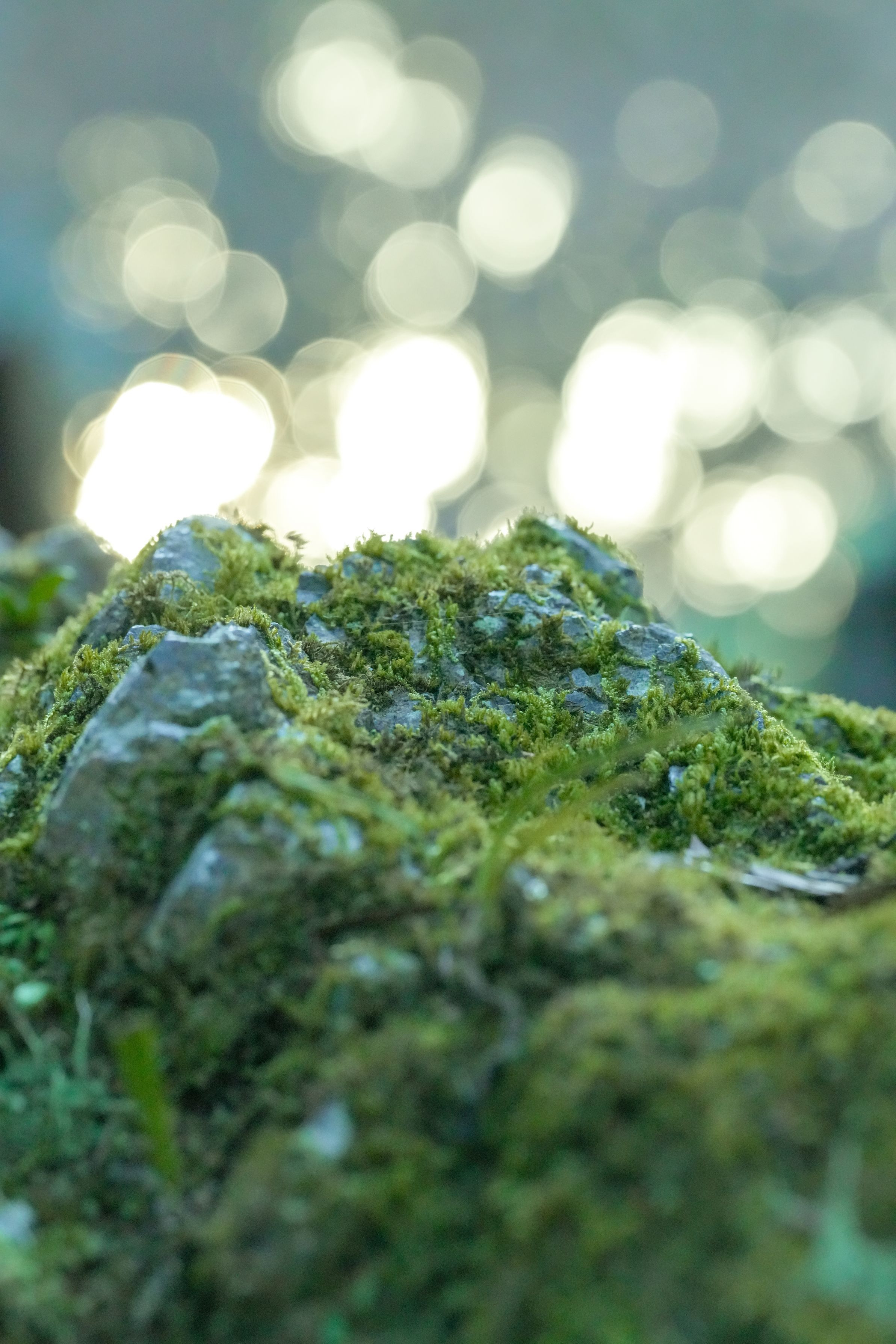 閑寂さの中に美しさを見い出し、 和の風情を重んじる日本庭園に欠かせない苔 木々の間から太陽光が差し込んできたので、 背景をキラキラに撮影してみました。