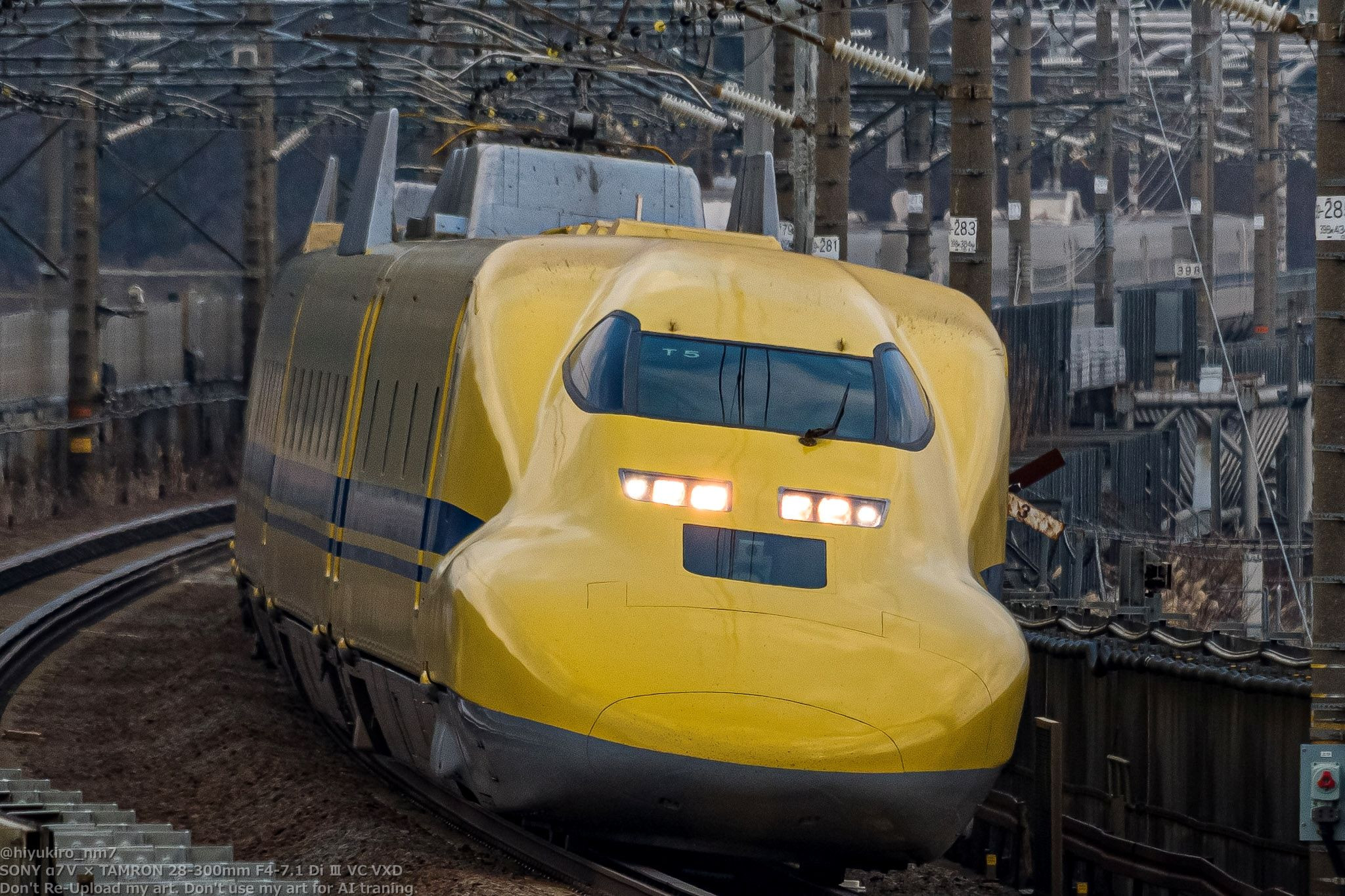 2026/1/5 ドクターイエロー(T5編成)1回目のぞみ下り検測でした。 加勢野トンネル東側にて撮影 【ボディ】α7Ⅴ 【レンズ】TAMRON 28-300mm F4-7.1 Di Ⅲ VC VXD ※焦点距離が足らなかったのでASP-Cクロップで撮影
