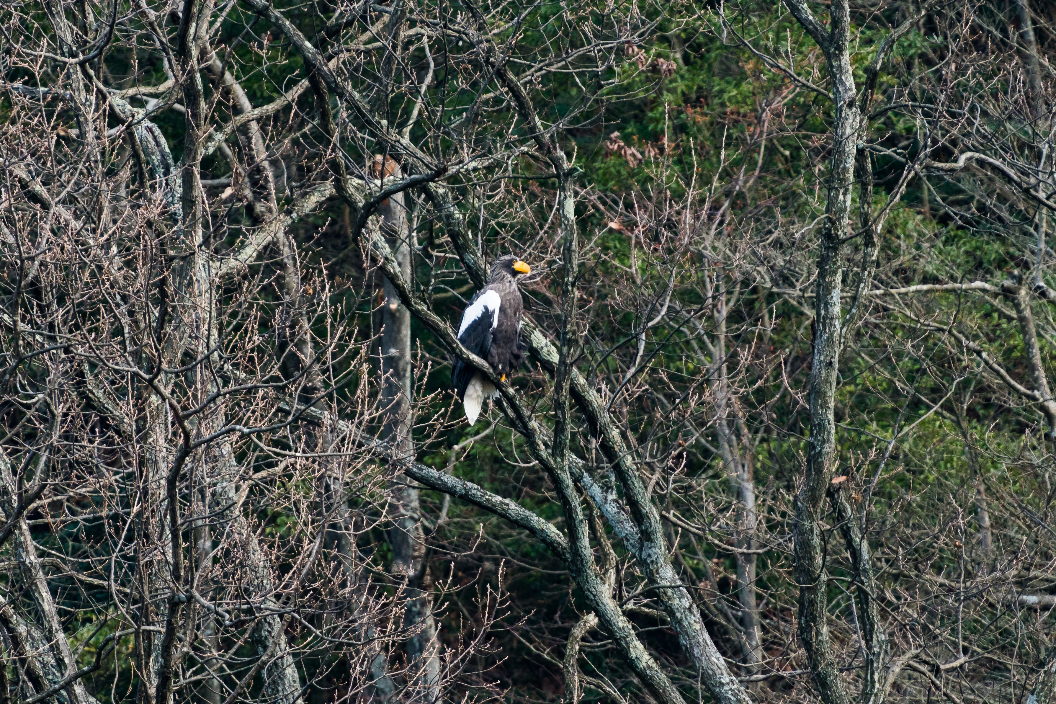 琵琶湖におばあちゃんオオワシが今年も飛来 元気そうでなにより 数年に一回くらいしか留まらない低い木で食事をしたらしく 皆さん大移動(笑)移動遅れて食事は撮れず。