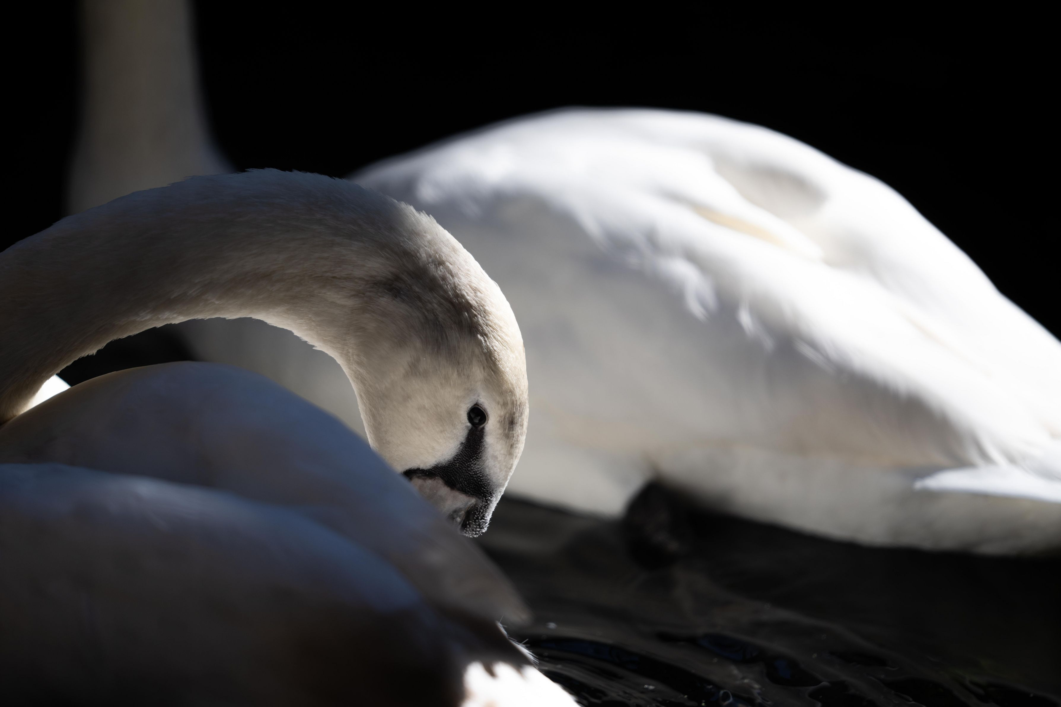 白鳥の毛繕いの瞬間を収めた1枚です。 元々フォルムが美しい白鳥ですが 影を強調することで、より美しく表現できたと思います。