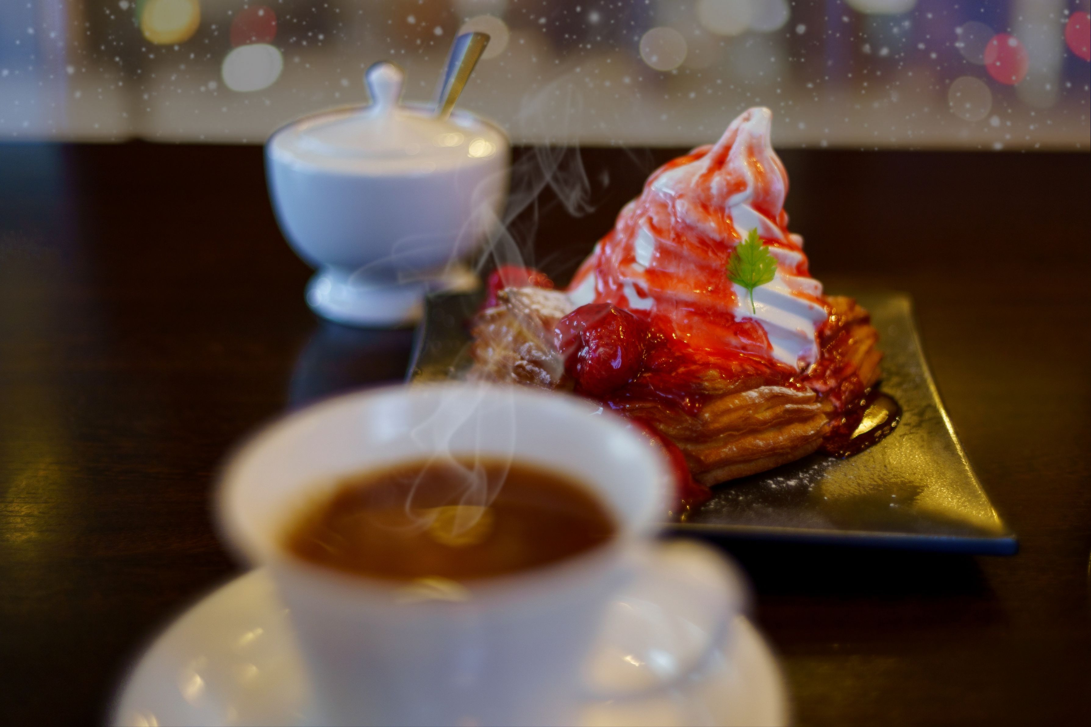 AIに1枚目の写真を点数評価してもらったら、おまけでいくつかの提案もあったので画像生成で修正して貰ったのが2、3枚目です。 Gemini回答「・・総合点として、50点満点中 47点と評価します。「雑誌の表紙のような、非日常的なカフェシーン」へと演出を加えてみましょうか?等・・ ●生成画像は、ちょっと微妙ですが、評価は構図等、複数項目で点数付きで解説してくれるので参考になります(^_^)