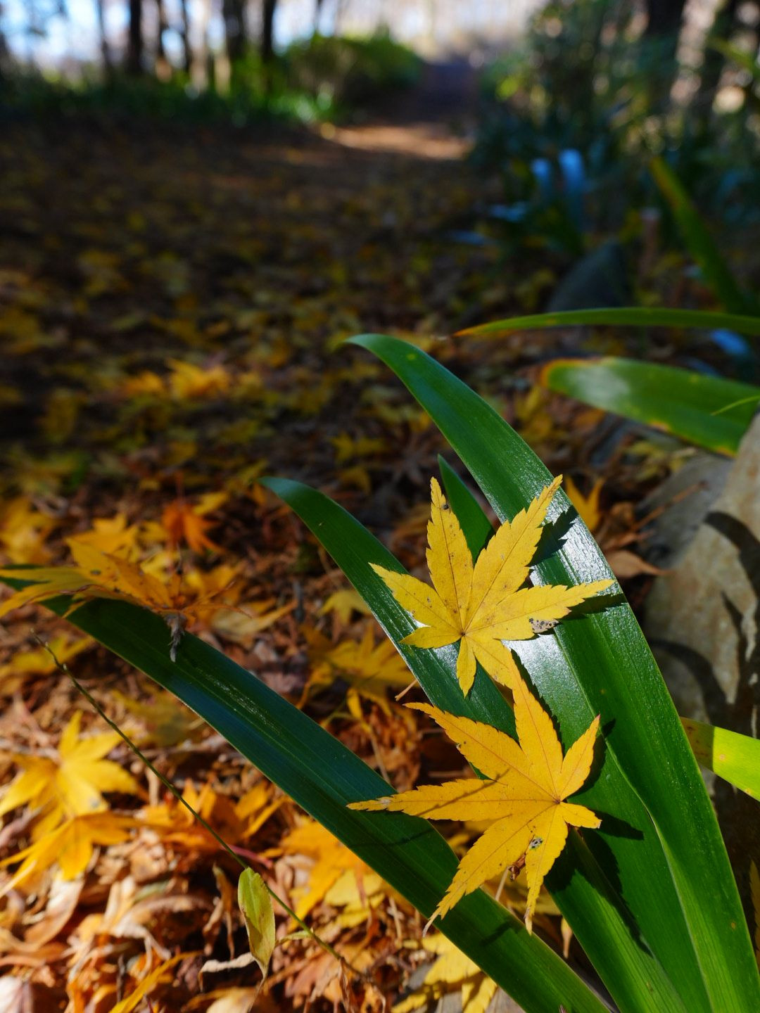 富士山がキレイに見える「つぶらの公園」で、うろうろしていた時に見つけた小径。キレイに色づいた黄葉が敷き詰められていました。
