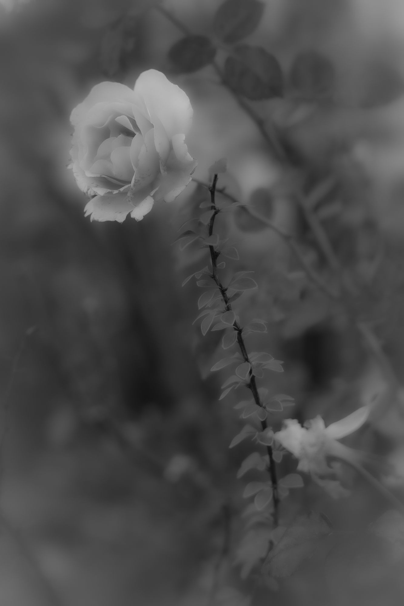 公園の花壇の片隅で、ひっそりと咲いていた薔薇の花・・・ ソフトフォーカスで仕上げました。