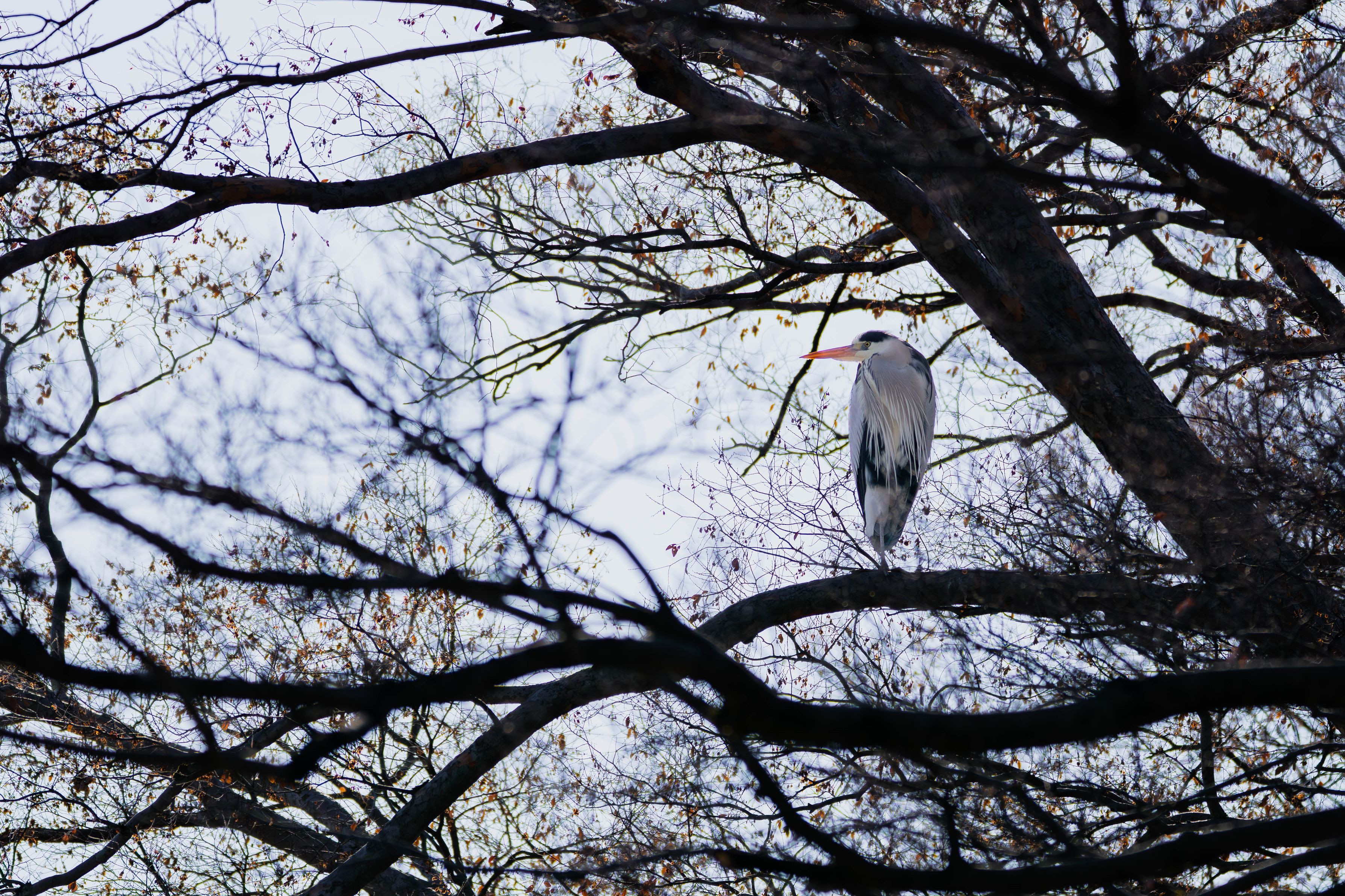 ふと見上げると、樹上にアオサギが止まっていました。まるで、誰かを待っているよう。その佇まいが美しかったので、シャッターを切りました。
