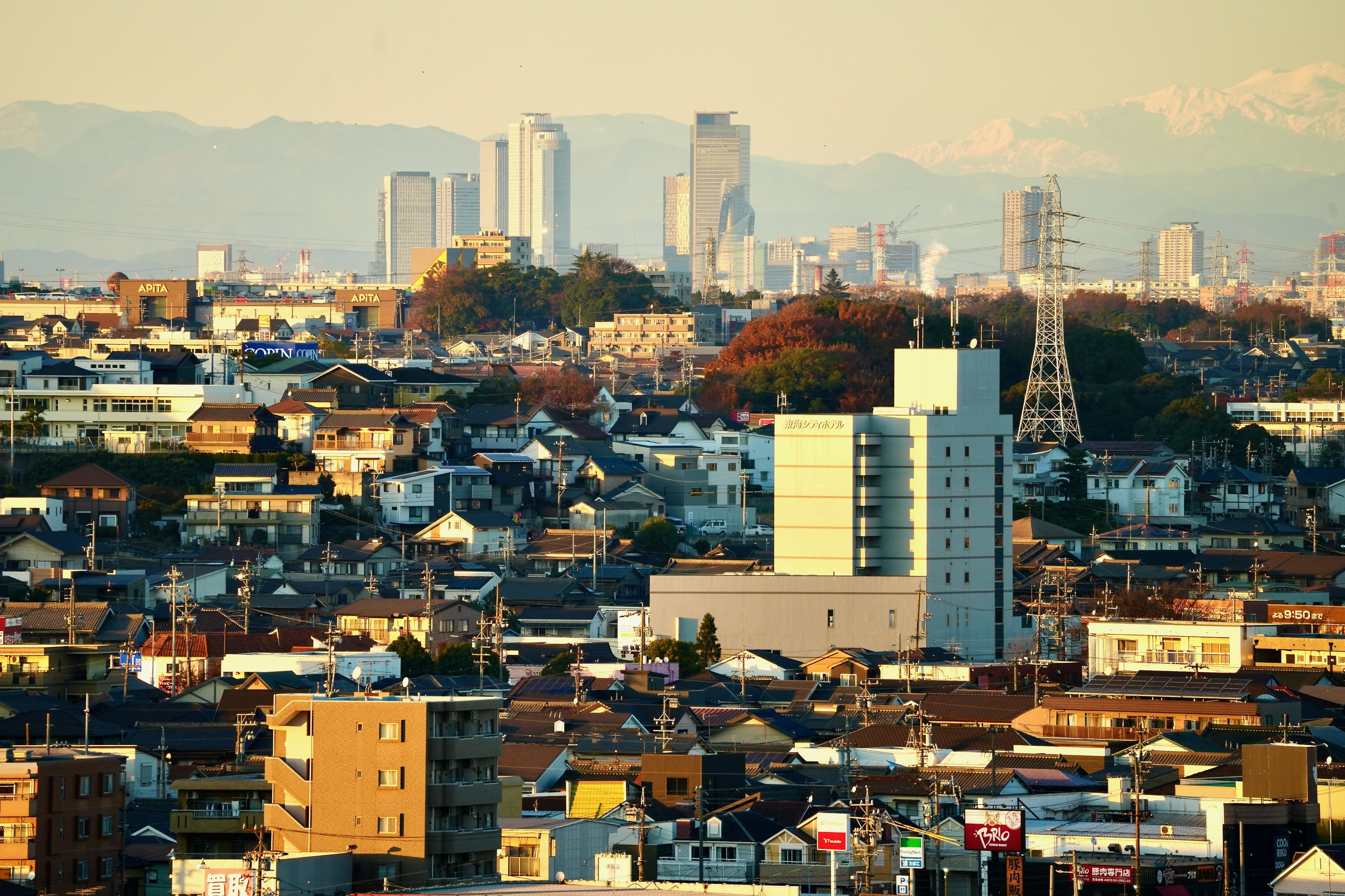 約20km先の名古屋駅のビル群がよく見えました。