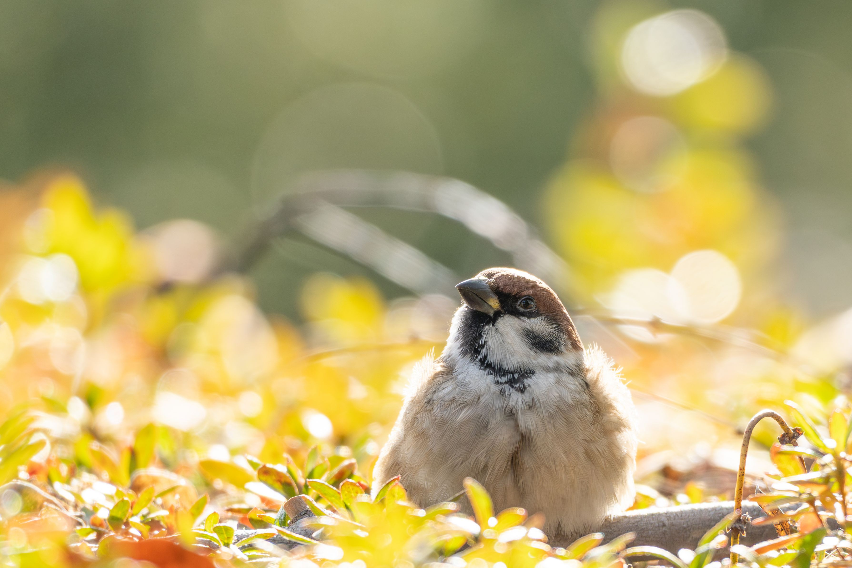 1月の寒い朝。お日さまいっぱいチャージして活動開始。 #スズメ#