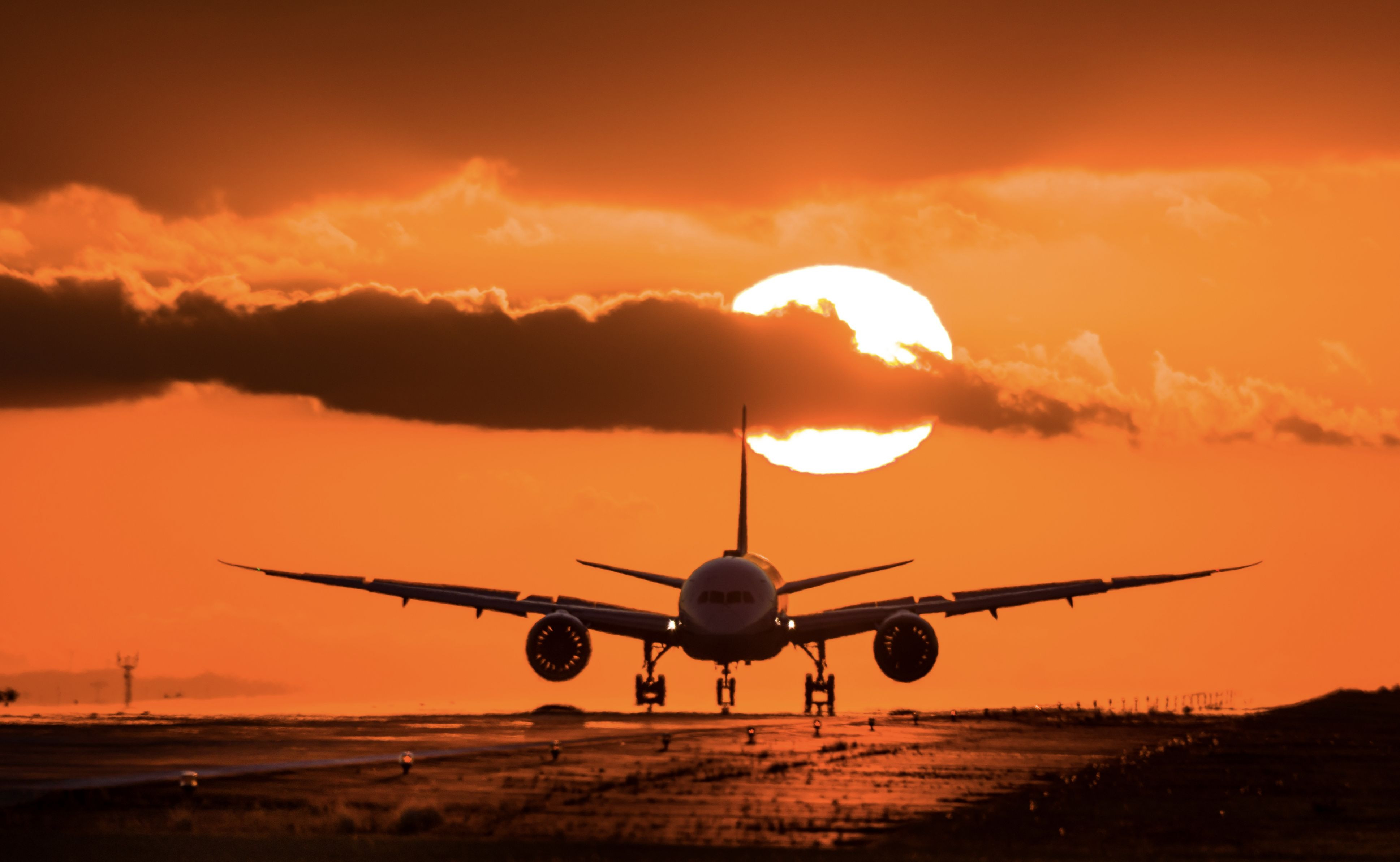 阿蘇くまもと空港での夕日と飛行機。 とても美しい光景でした(^^)
