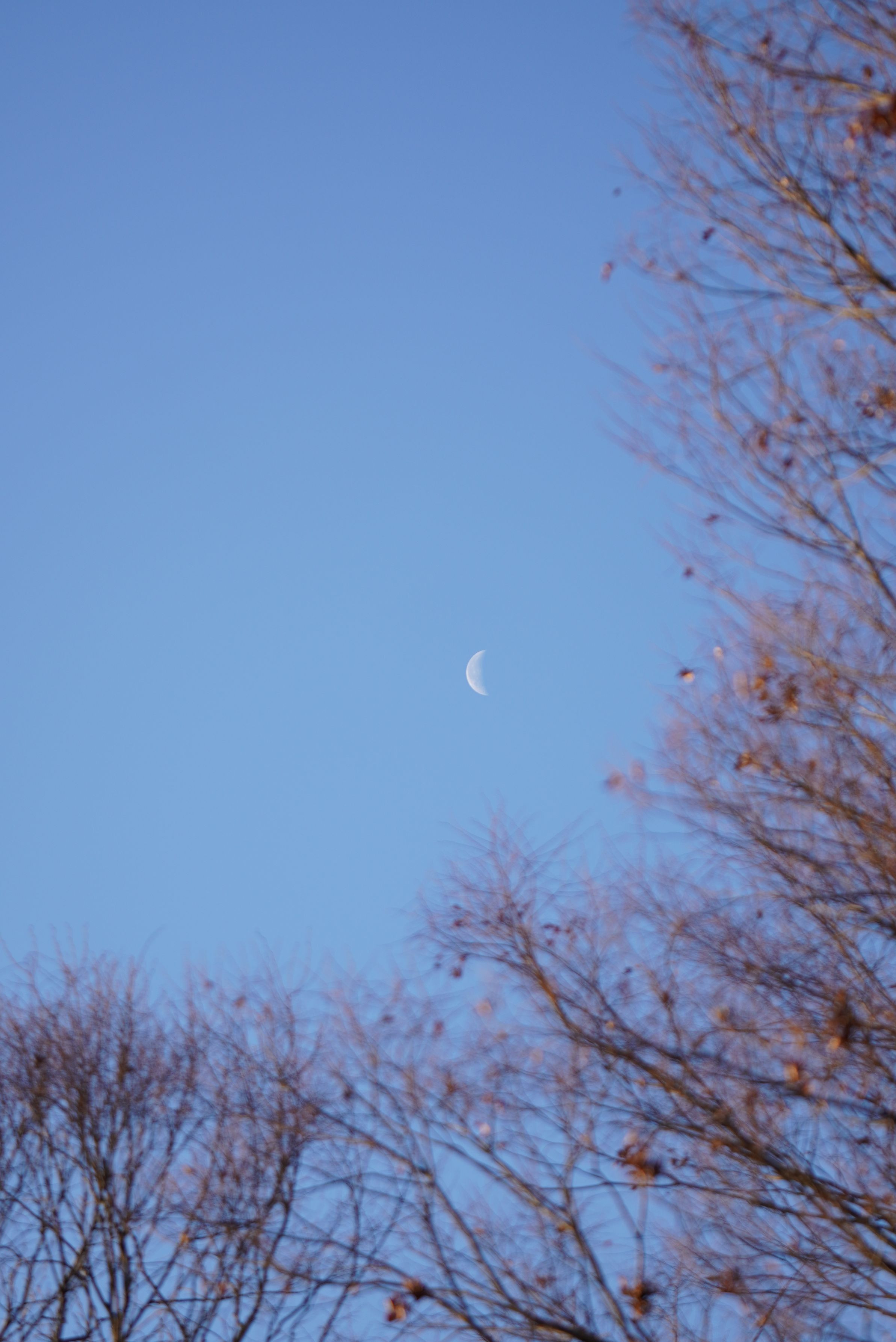 青くなり始めた空に残る月。
