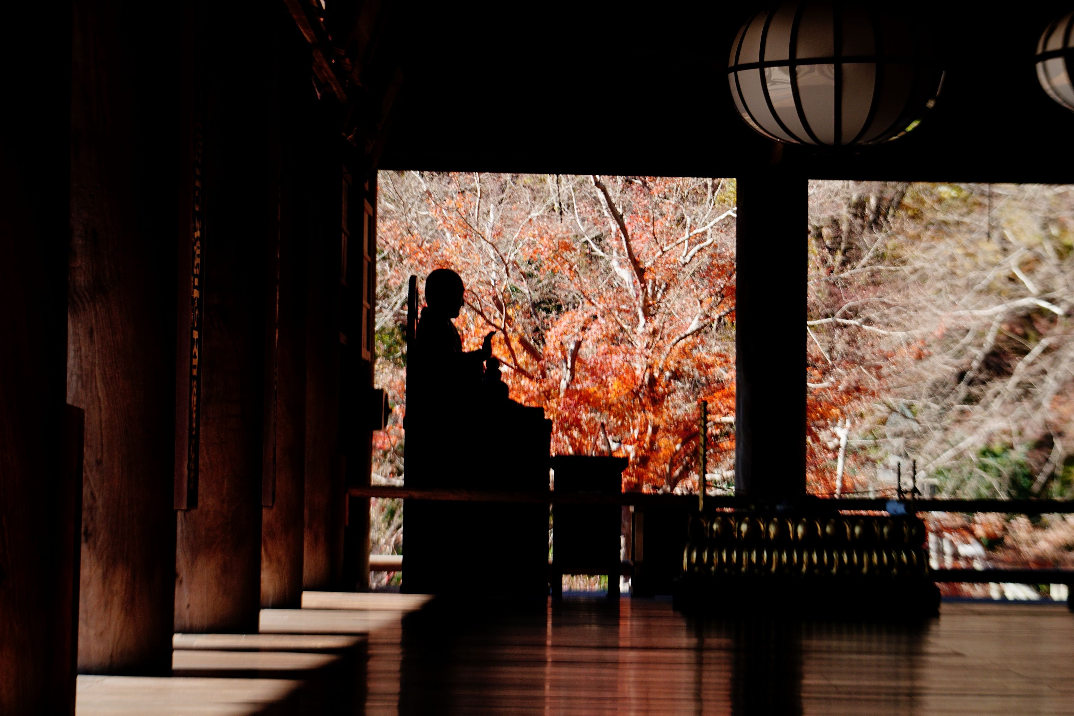 仏像の影と、外の紅葉の鮮やかさ。 その対比の中に、静寂がそっと息づいていました。 #奈良県# 桜井市初瀬 長谷寺