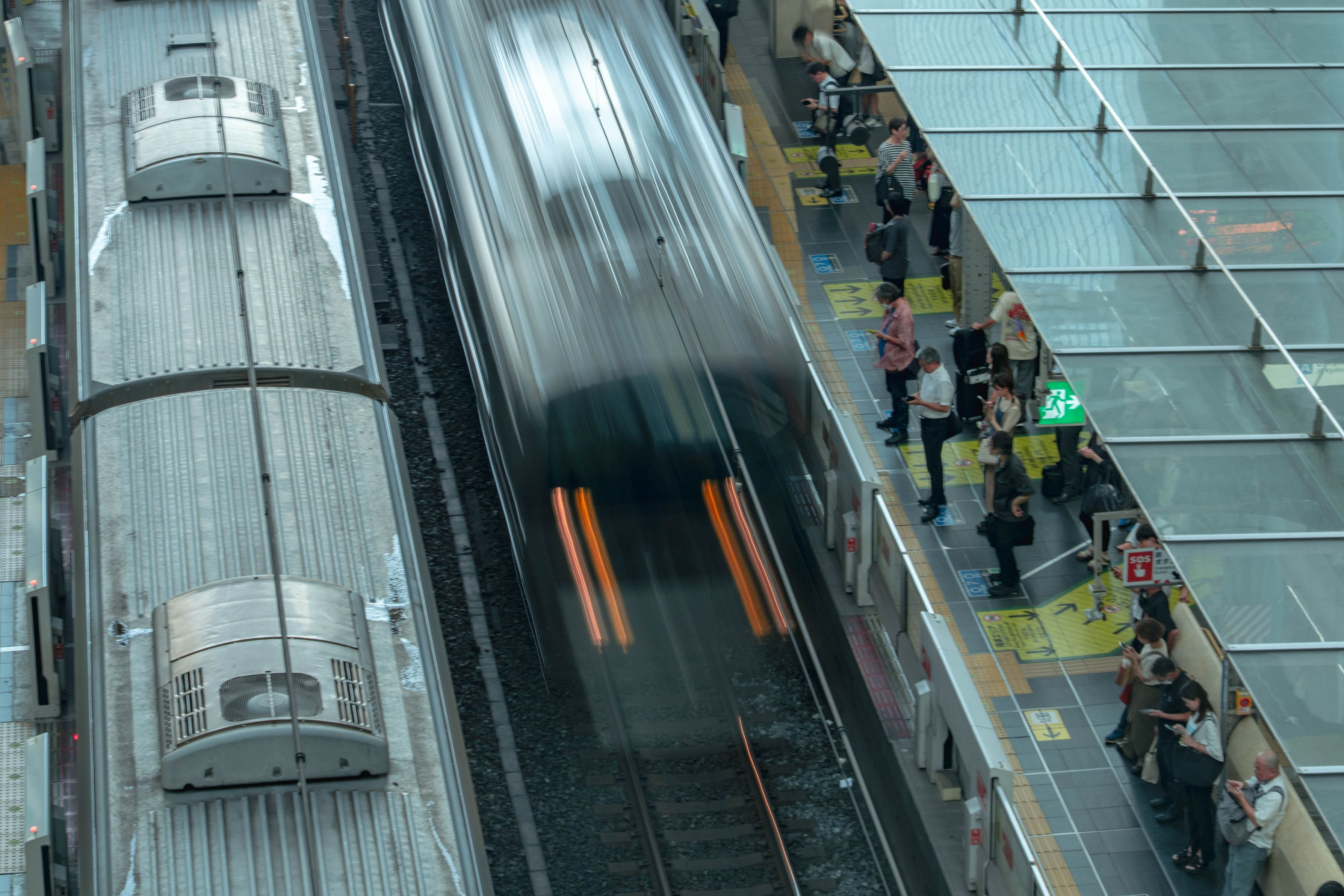 夕方の駅。静かに電車を待つ人々と、入線してくる電車の動きが、対照的で面白く感じました。少しノスタルジックな風景です。