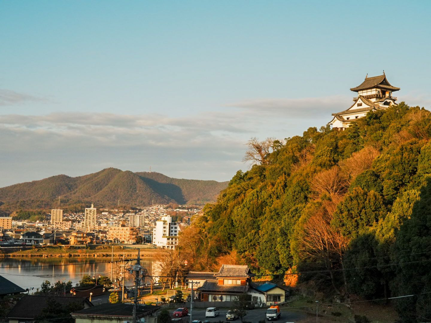 木曽川沿いから眺める夕焼けが最高に綺麗でした! 黄金色に輝くお城と、対岸に広がる街並み。 この時間帯にしか出会えない、特別な色に癒やされた一日。