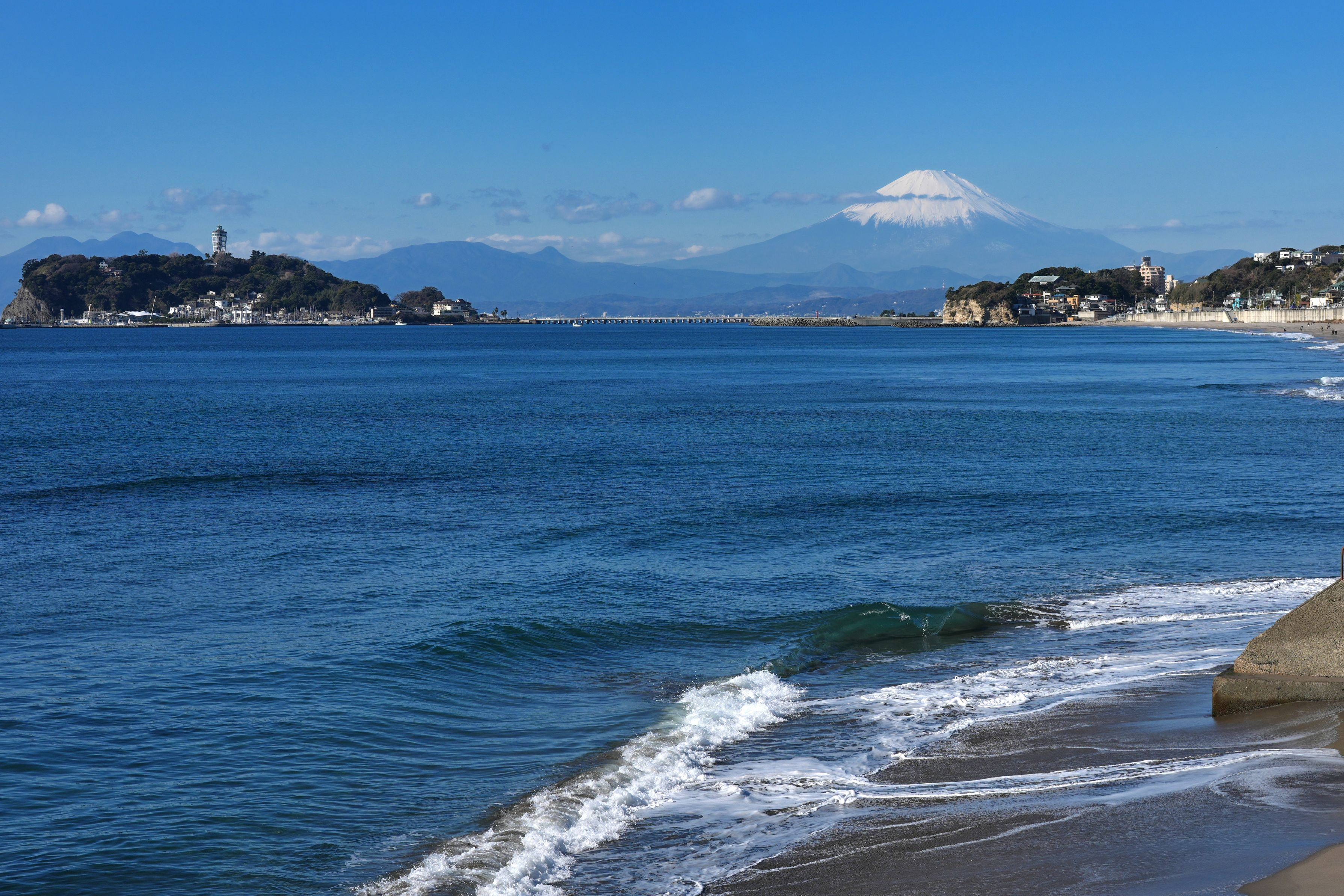 よく晴れた朝 富士山と江ノ島を撮りに出かけました